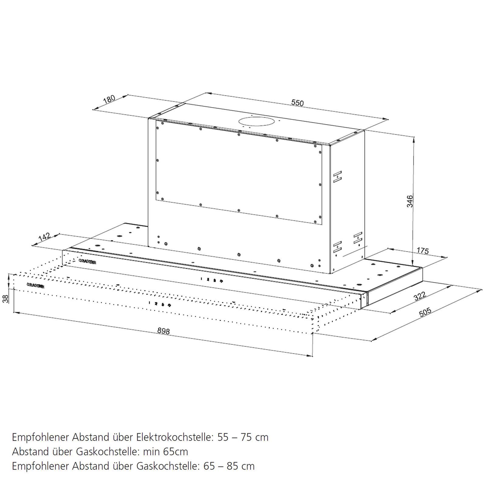 Oranier Oranier Einbau Dunstabzugshaube 90 cm Abluft LED ausziehbarer Schublüfter FLA690