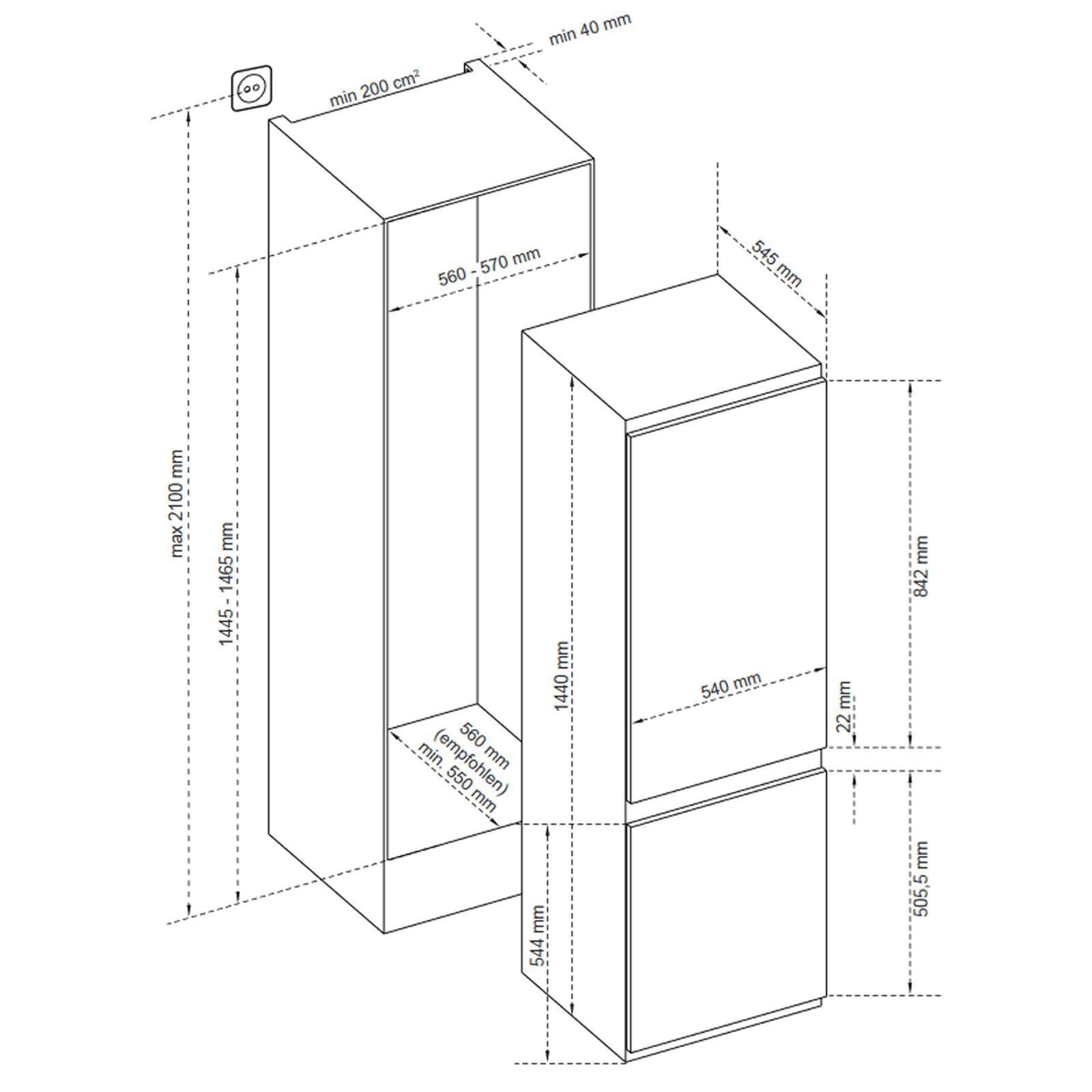 Oranier Oranier Einbau Kühlschrank-Gefrier-Kombination 145cm EKG145 Schlepptür 211 Liter