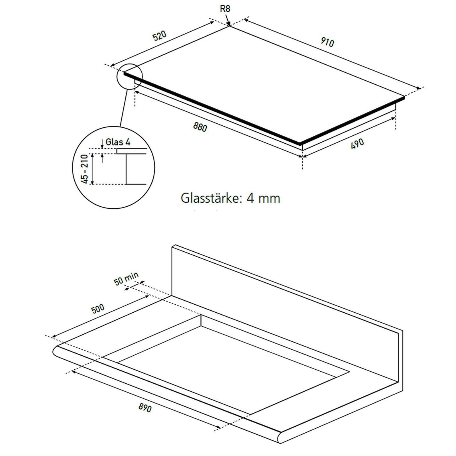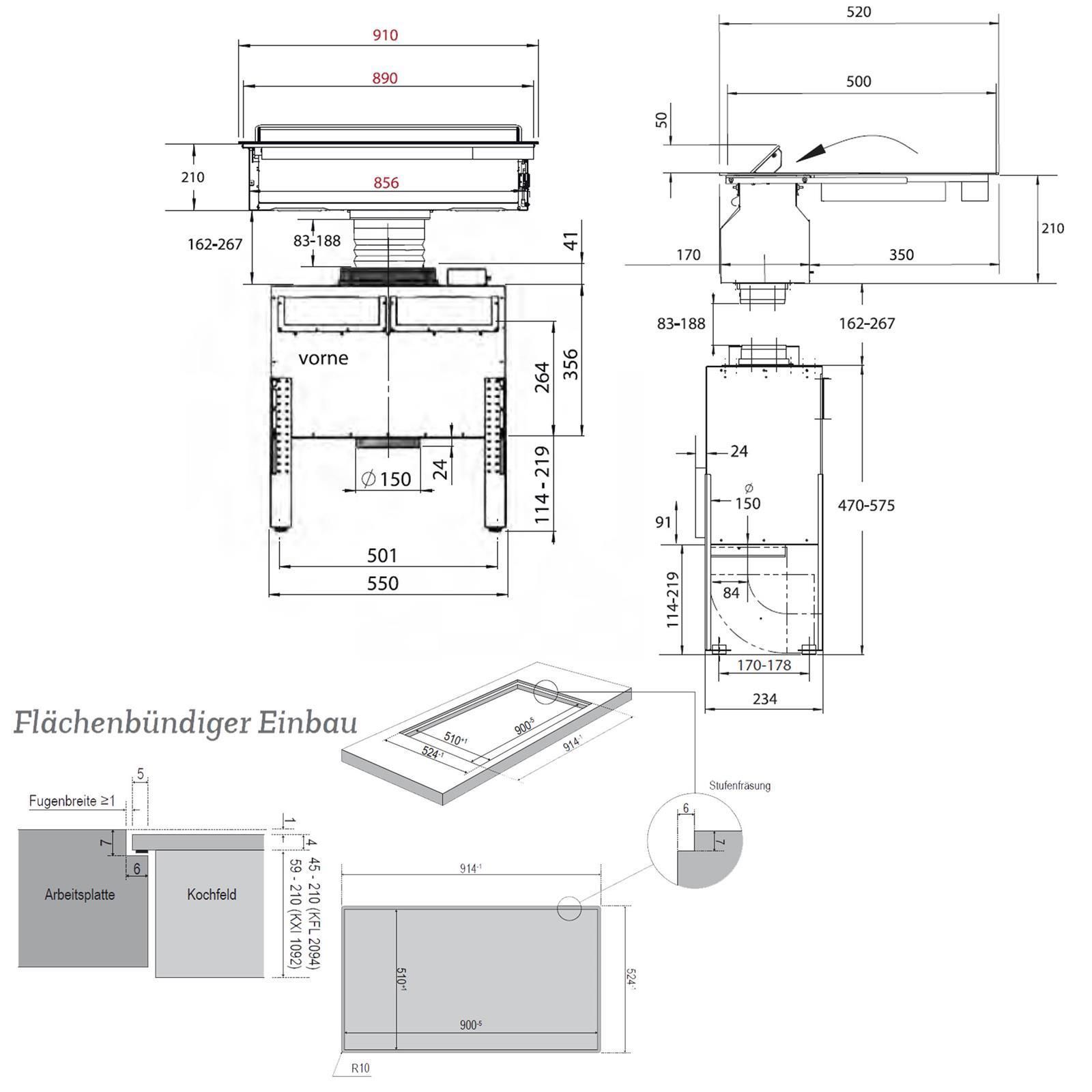 Oranier Oranier Flächen-Induktion KFL 2092 Dunstabzug 90 cm Edelstahlleisten Grillplatte