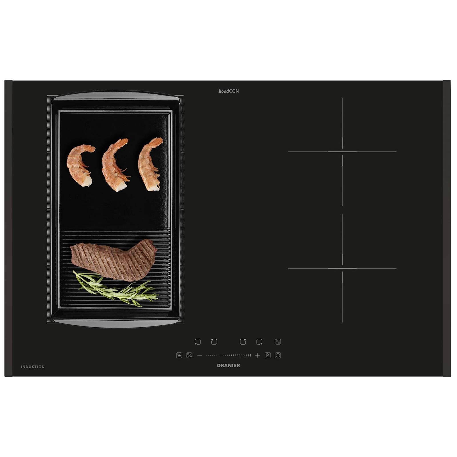 Oranier Oranier Kochfeld Induktion 80 cm KXI480 Dunstabzug schwarze Leisten Grillplatte