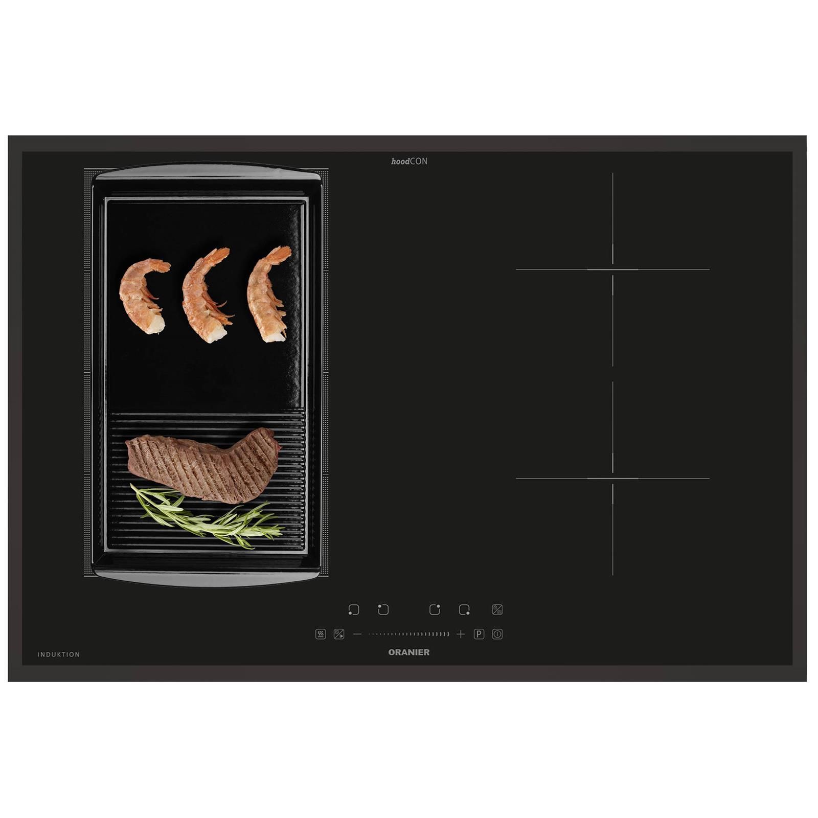 Oranier Oranier Kochfeld Induktion 80 cm KXI480 Dunstabzug schwarzer Rahmen Grillplatte