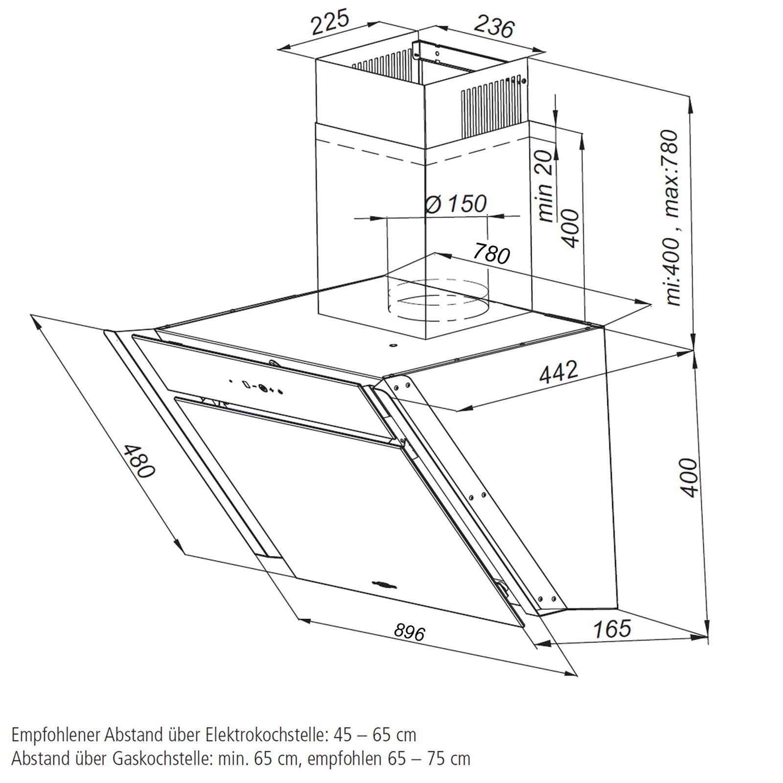 Oranier Oranier Kopffrei Wandhaube Abluft 90cm schwarz schräge Dunstabzugshaube MEBA90S1