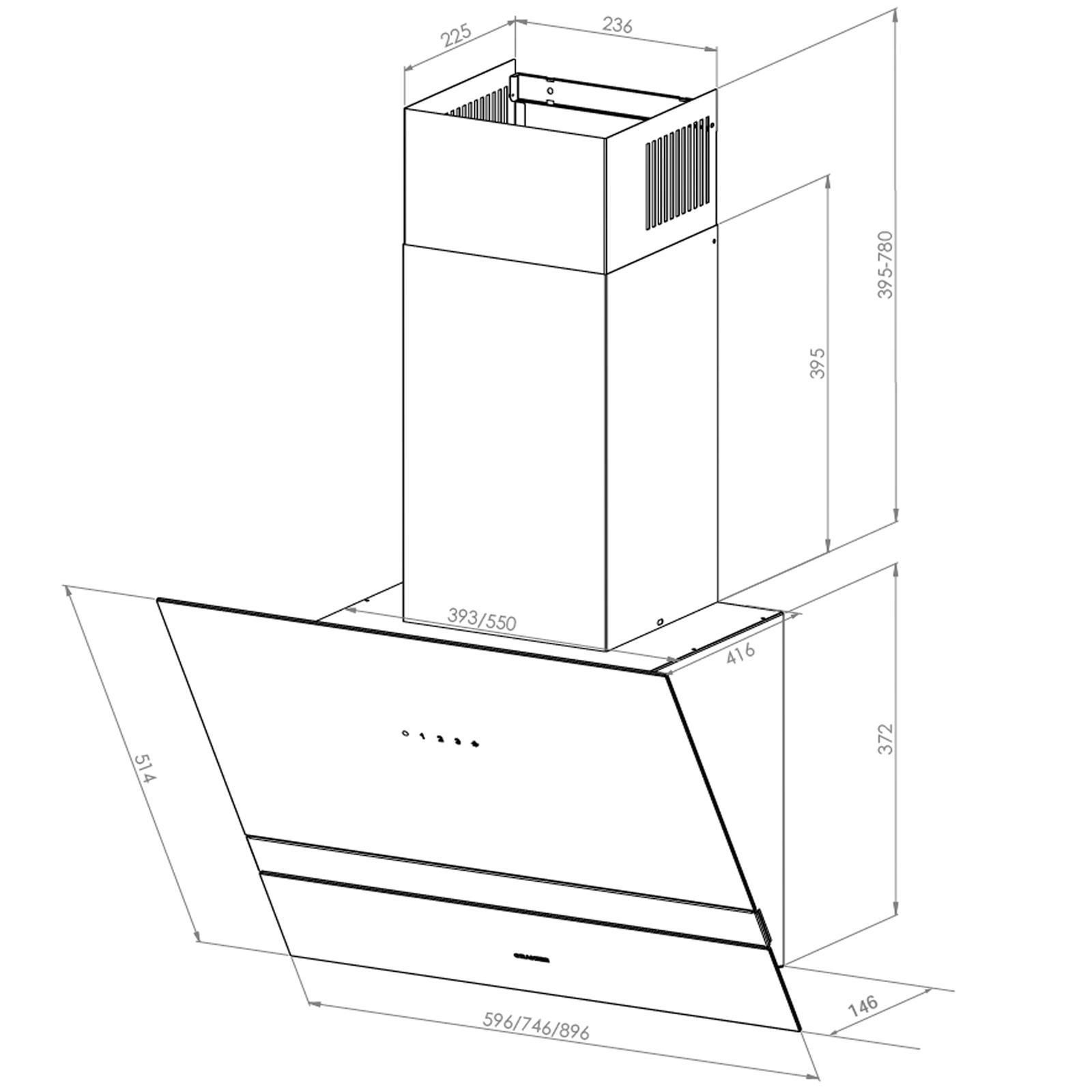 Oranier Oranier Kopffrei Wandhaube Umluft 60cm schwarz schräge Dunstabzugshaube ALIS60S2