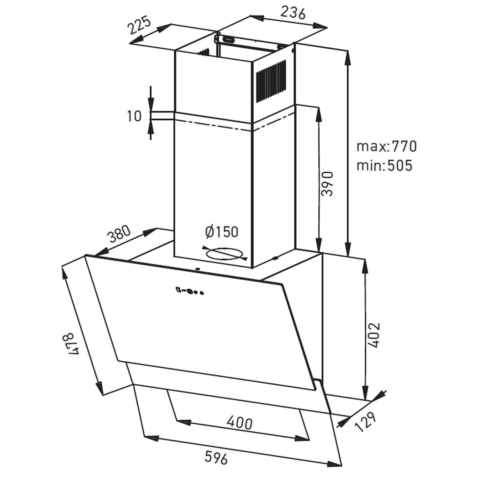 Oranier Oranier Kopffreihaube 60 cm schwarz Schräghaube Dunstabzugshaube Abluft Miran S