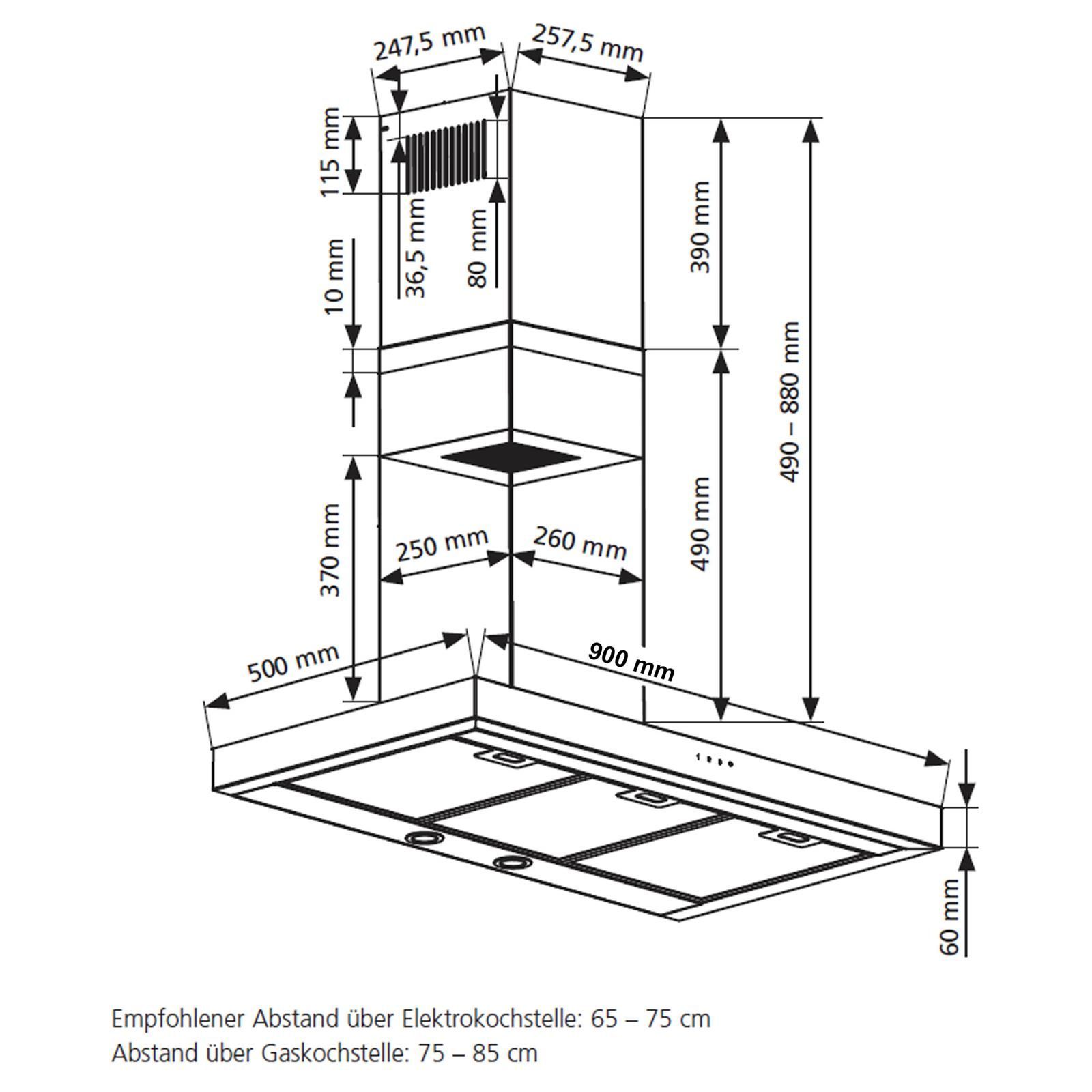 Oranier Oranier Wandhaube 90 cm Edelstahl Touch Dunstabzugshaube Umlufthaube SIRIA90E1