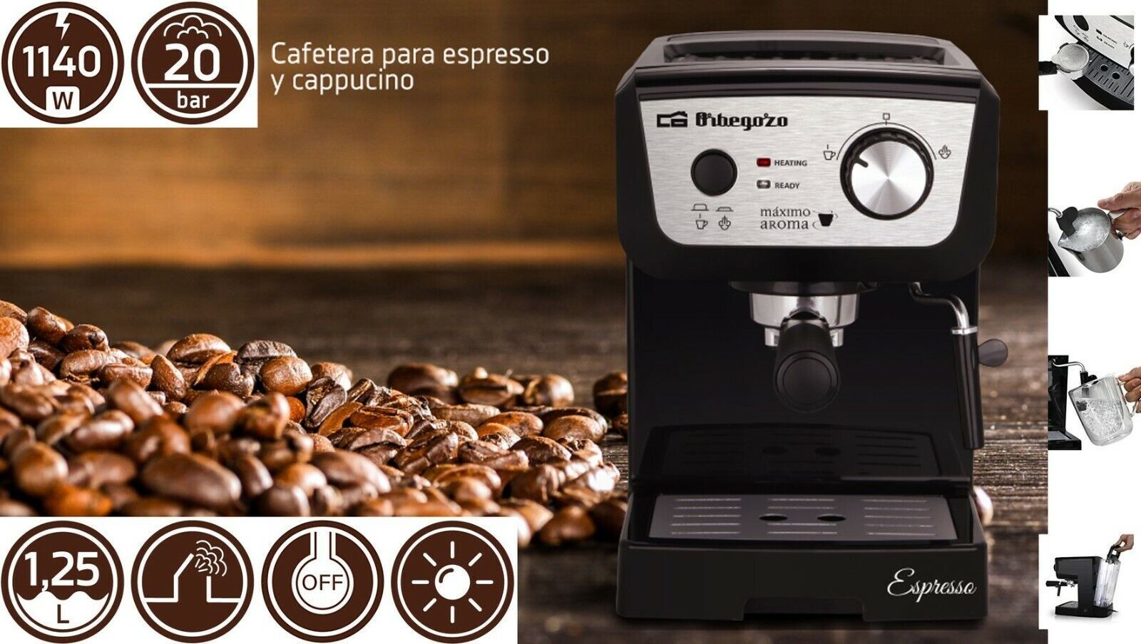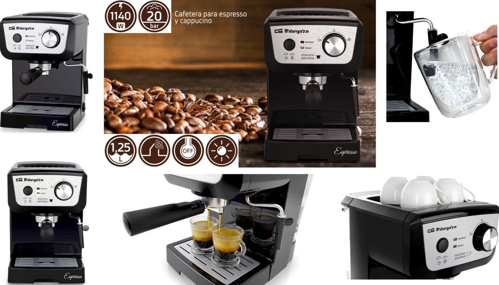 Orbegozo EX3100 Espresso Cappuccino Pad Kaffee maschine 20 Bar 1140W 1,3L