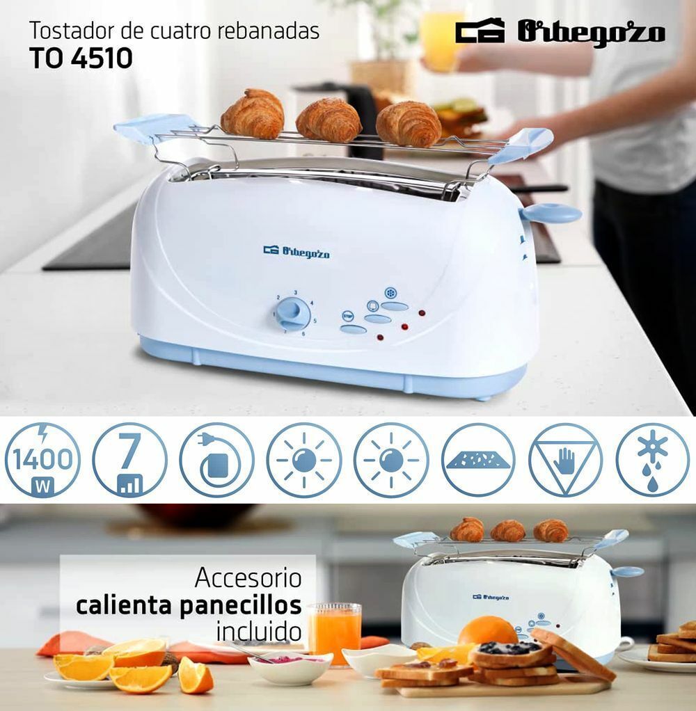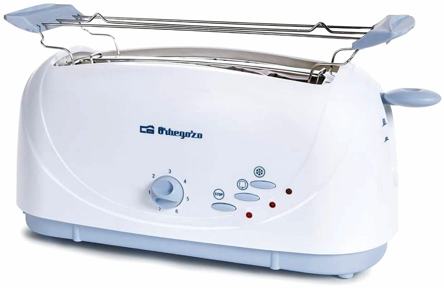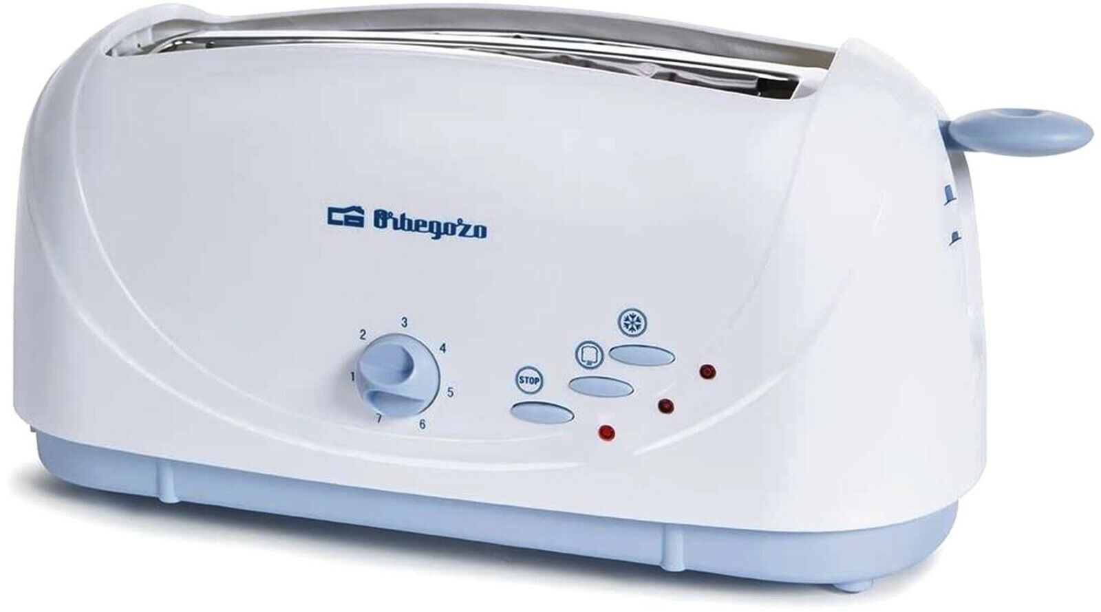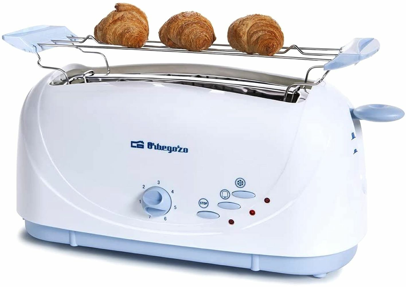 Orbegozo TO4510 Retro Toaster Langschlitz 1400W 7 Stufen Brotaufsatz Weiß Blau