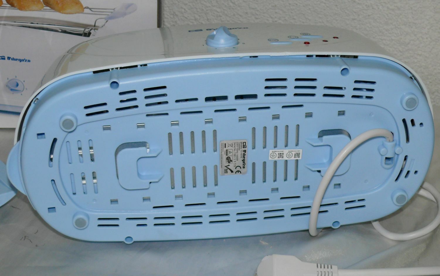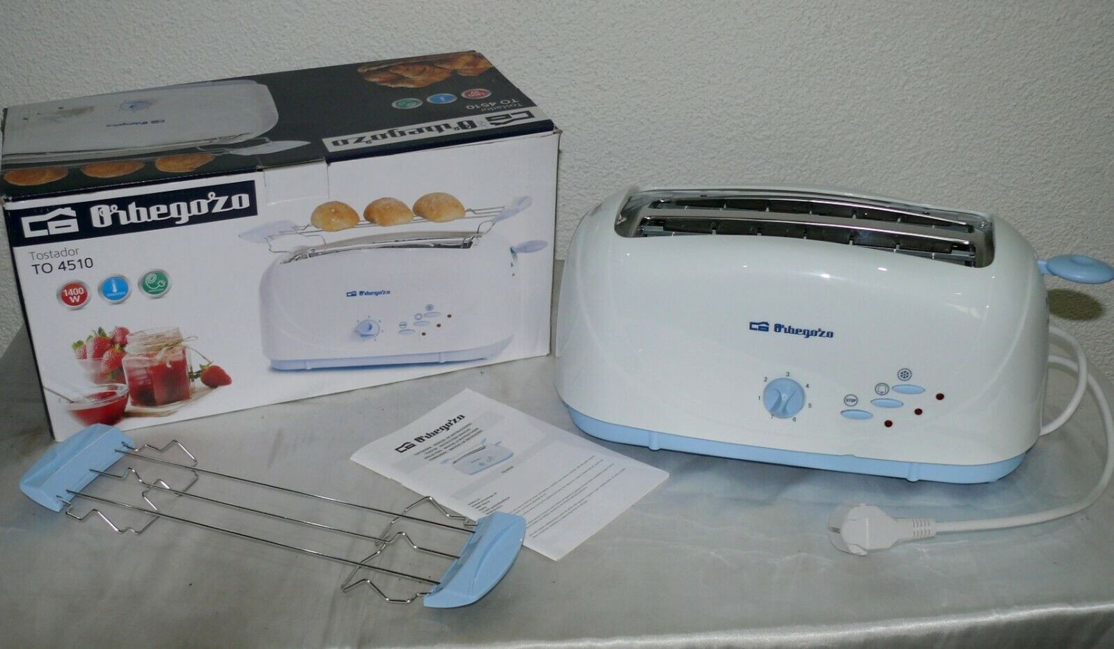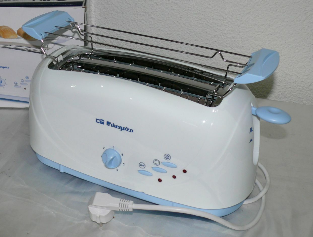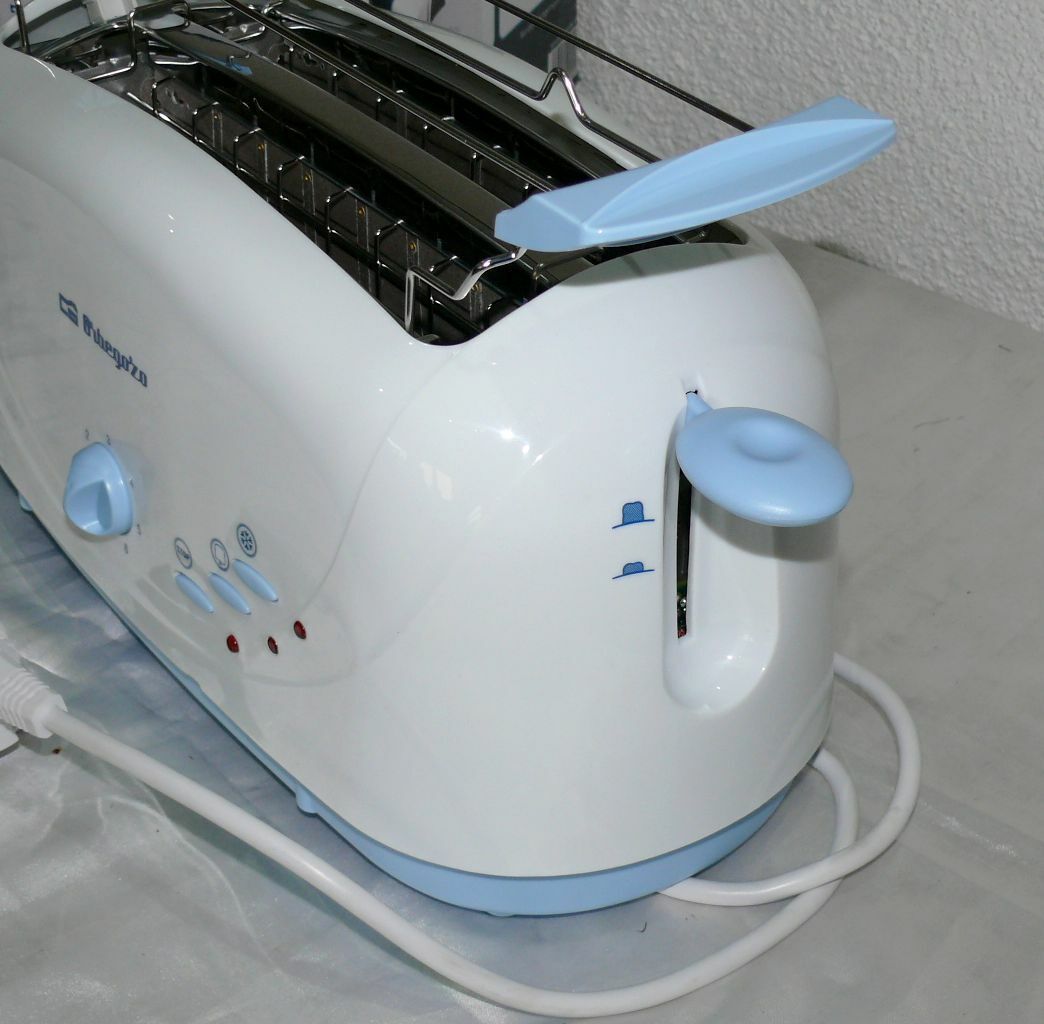 Orbegozo TO4510 Retro Toaster Langschlitz 1400W 7 Stufen Brotaufsatz Weiß Blau