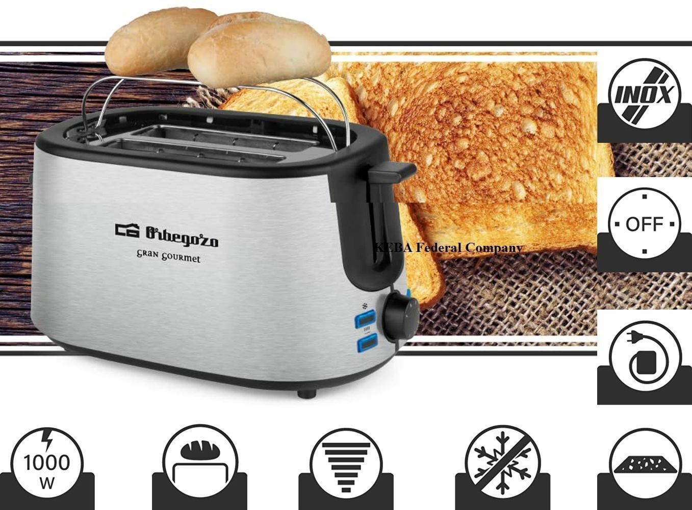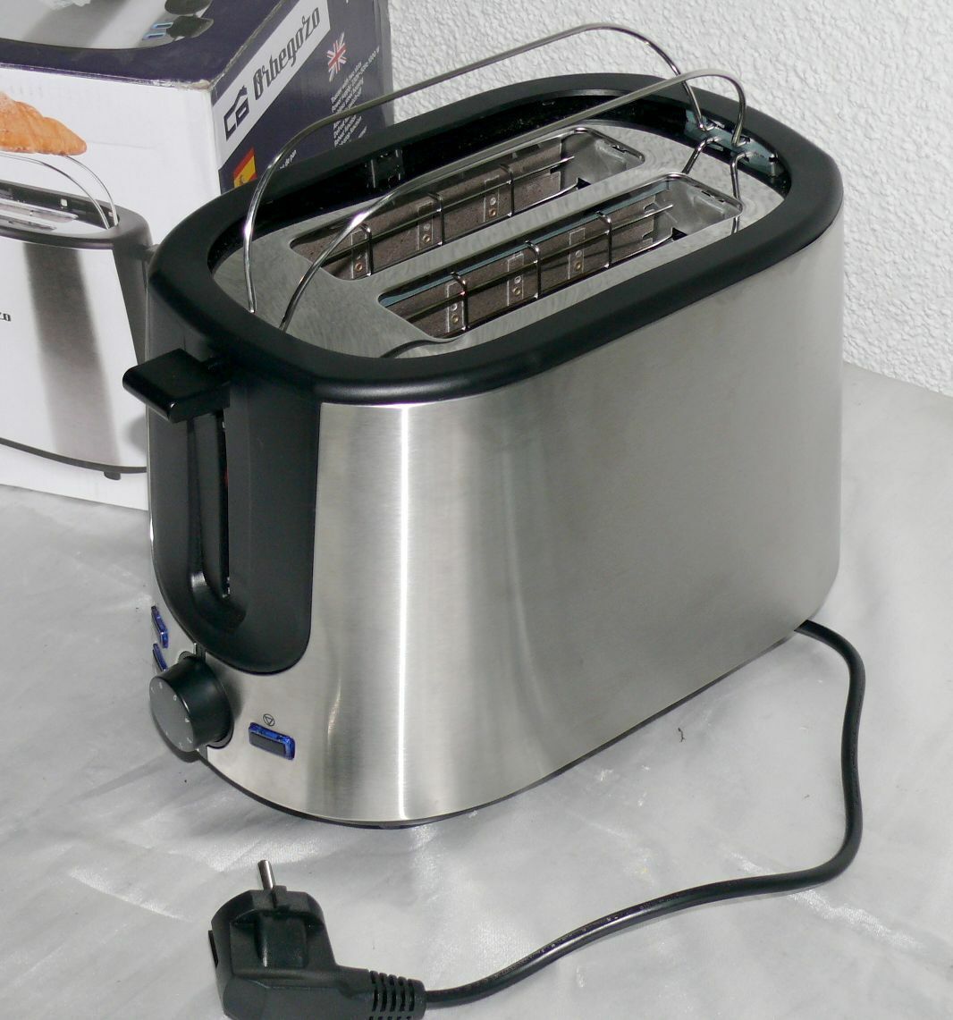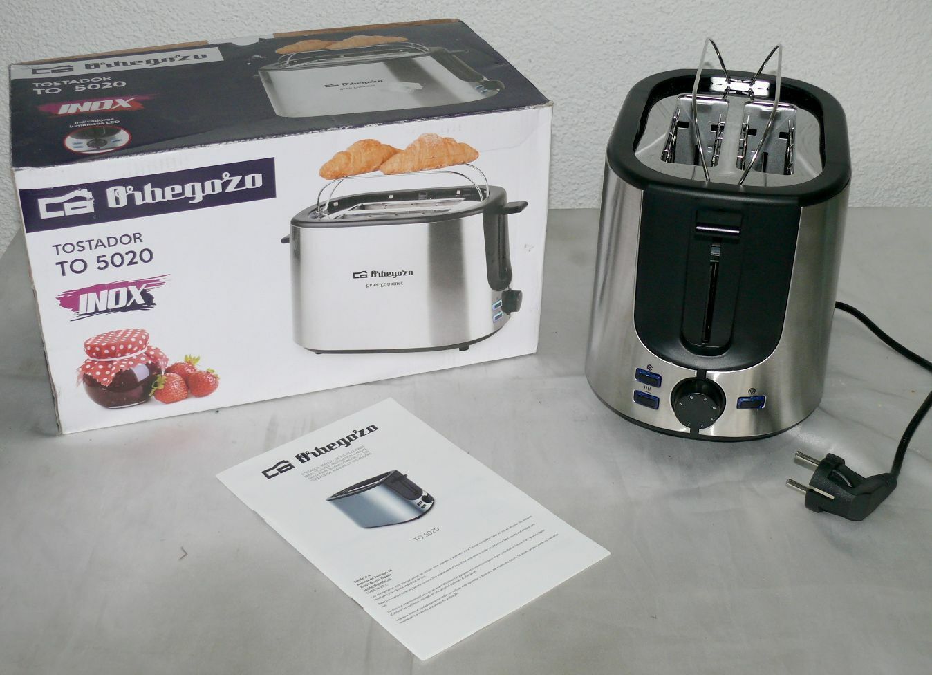 Orbegozo TO5020 Retro Toaster Doppelschlitz 1000W 7 Stufen LED Brotaufsatz INOX