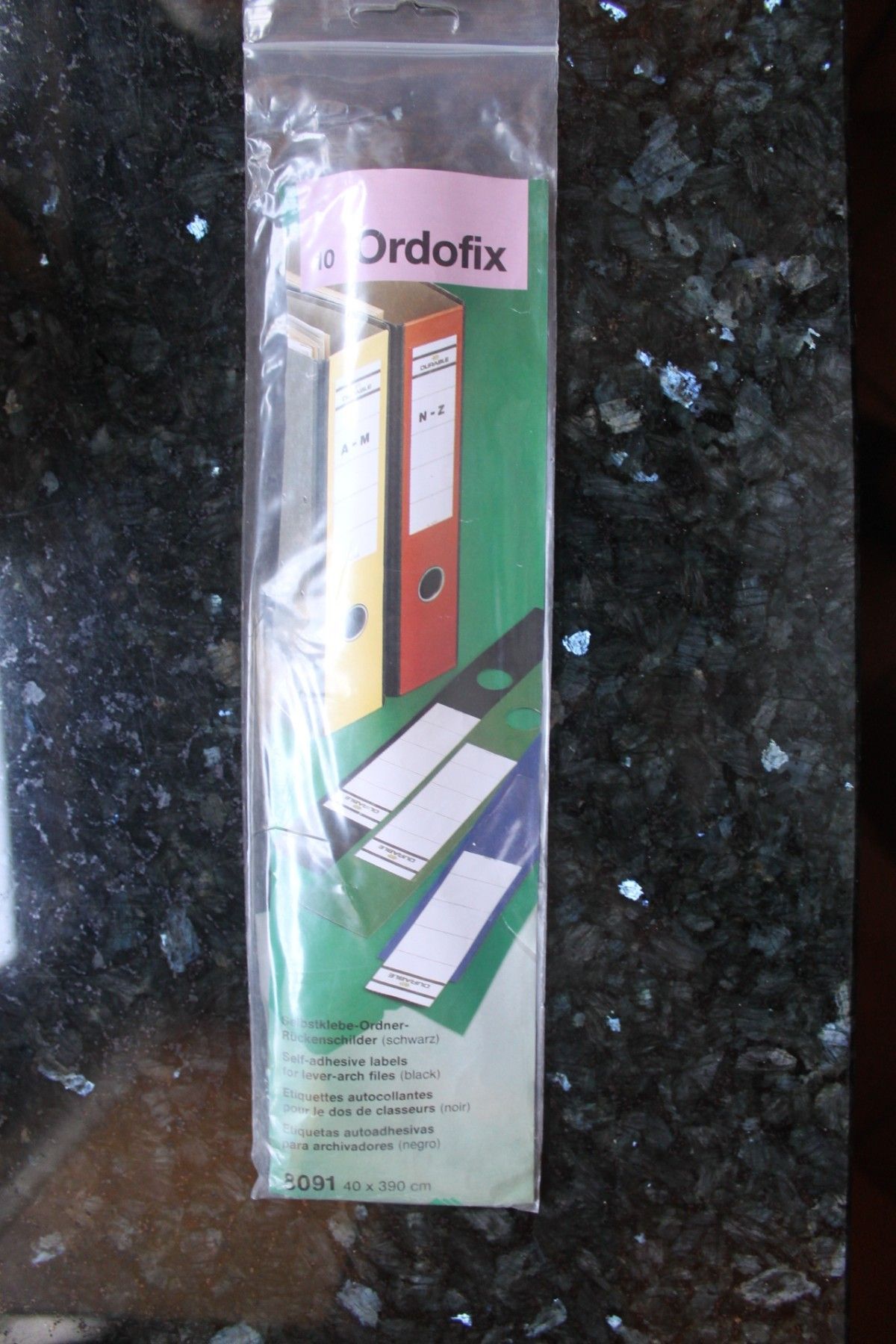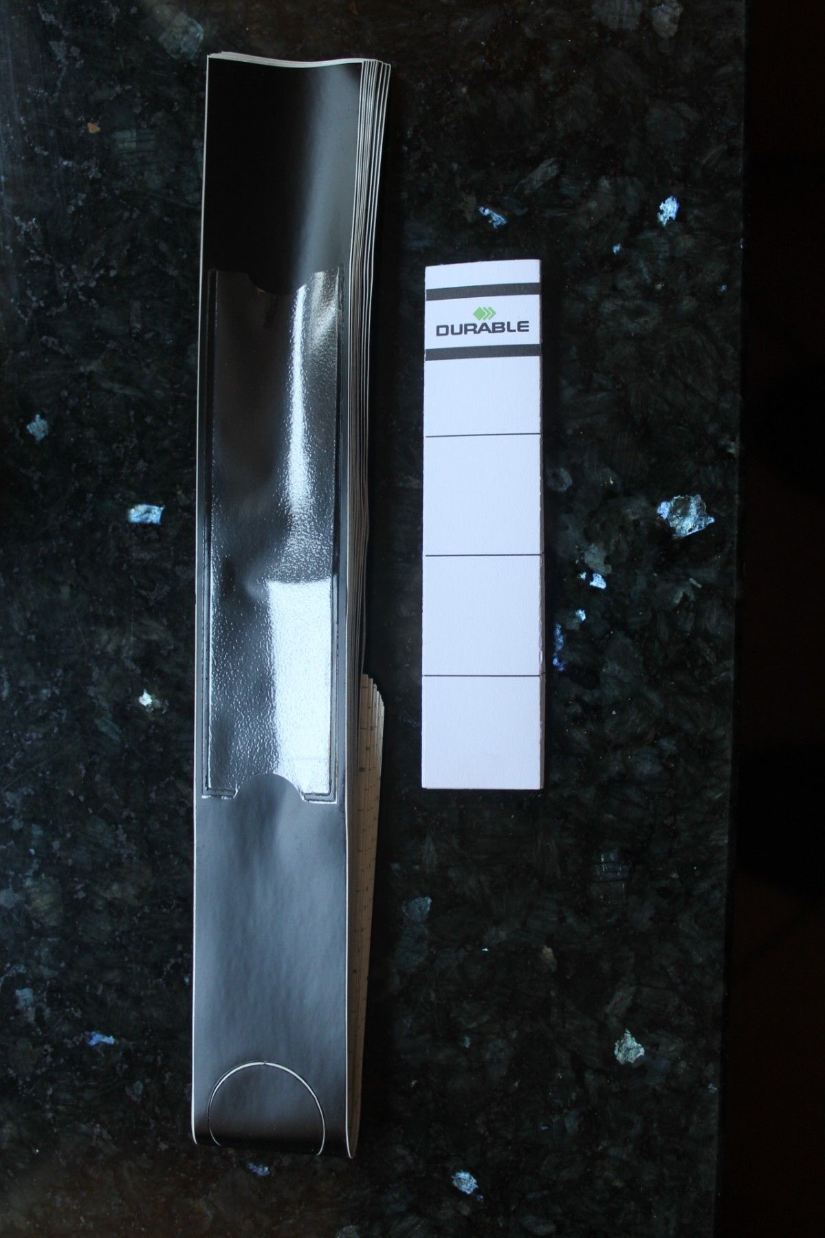 Durable Ordnerrückenschild, schwarz, 10 Ordofix Rückenschilder, 40 x 390 cm, selbstklebend