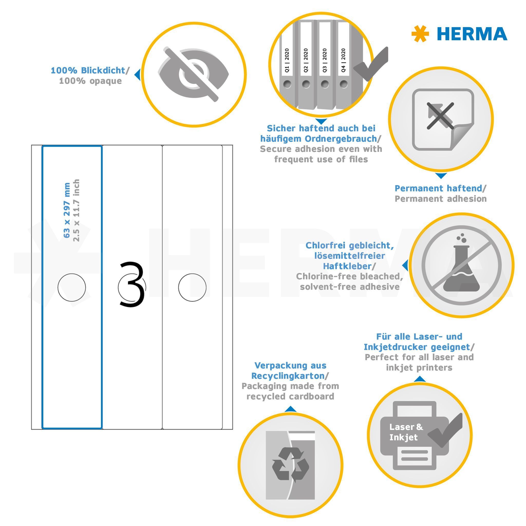 Herma Ordnerrückenschilder perm 297 x 63 mm weiss Hängeordner 25 Bl 75 Etik