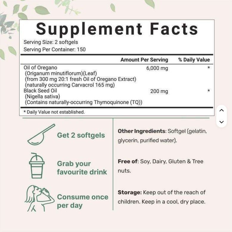 Oregano Öl Kapseln 6000mg | 180 Softgels | Hochdosiert Antioxidans Pflanzenextrakt