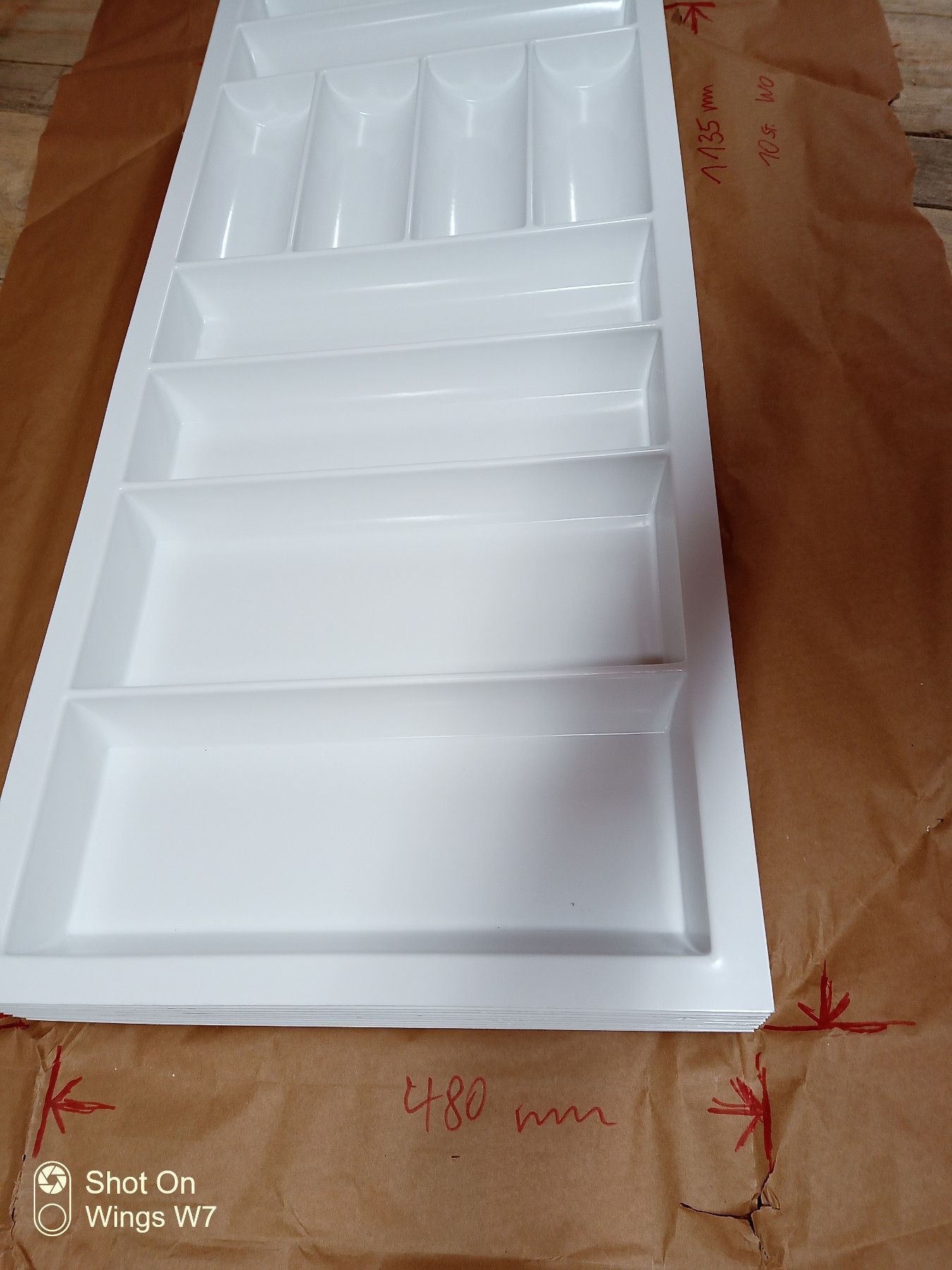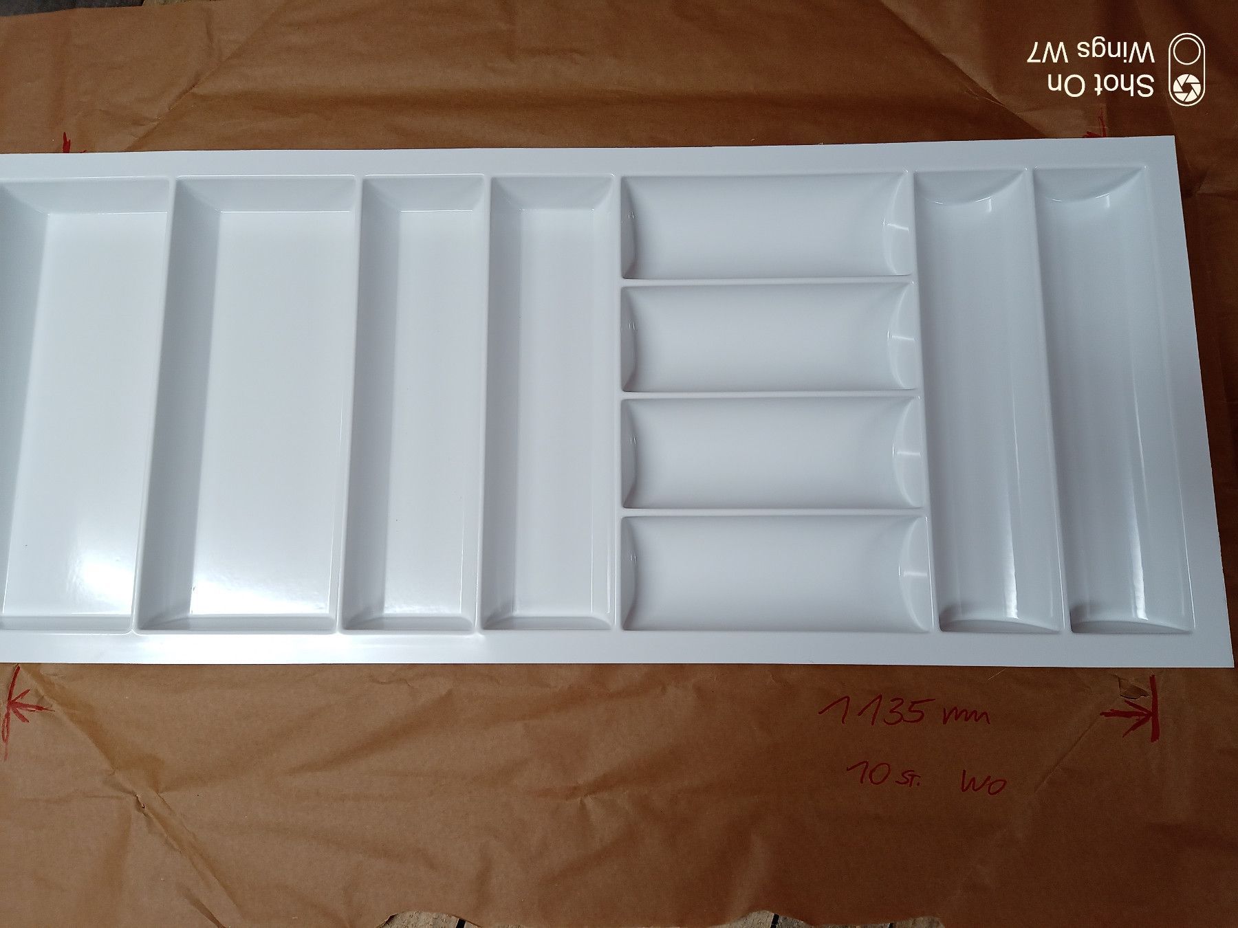 Besteckeinsatz Besteckkasten Schubladeneinsatz Bei 19er Seitenwände müsste der Besteckeinsatz auf beiden Seiten um je 3 mm gekürzt werden Abmessung 480 x 1135 Material Kunststoff Farbe weiss Oberfläche glänzend Hinweis: Bitte messen Sie vor dem Kauf Ihre Innen-Schublade, um Missverständnisse zu verm