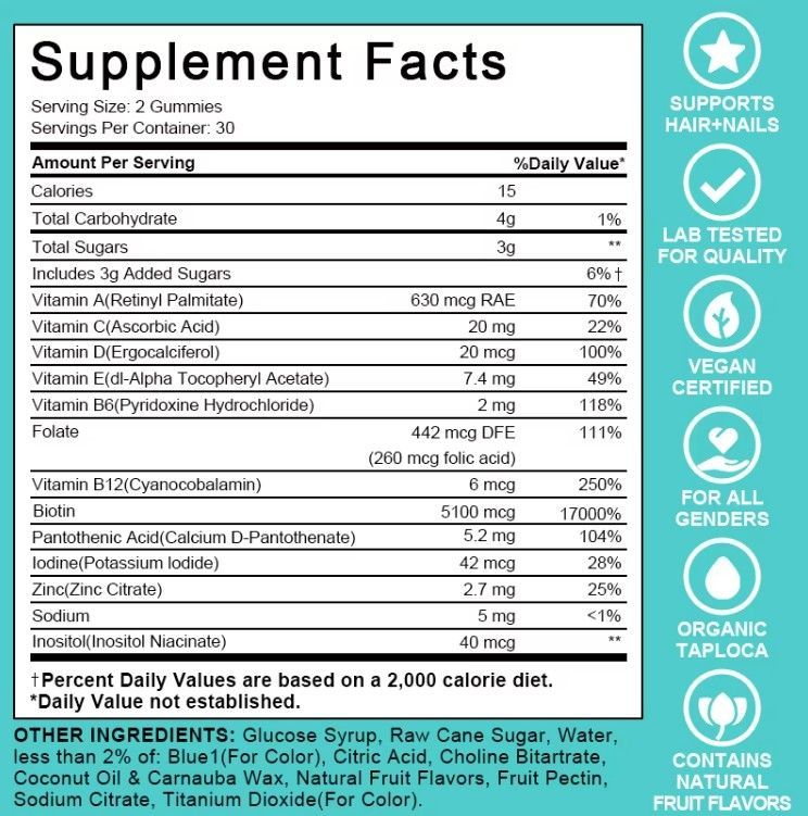 Täglich 2 Gummi es kauen – kein Wasser nötig. Ideal als Teil deiner täglichen Schönheitsroutine. Organische Biotin Zink und Folsäure Blue Gummi Multi Vitamin Bears Vitamin C Haarwuchs Gummis zur Verringerung des Haar Verlusts Haar-Vitamin ist ein leicht zu kauen des, veganes Vitamin für alle Haar ty