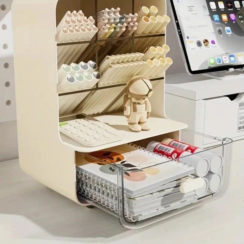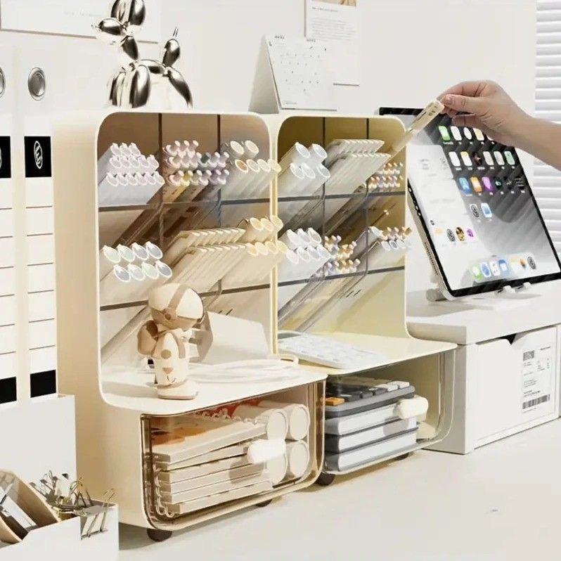 Optimisez chaque centimètre carré de votre espace de travail avec cet organiseur à insertion inclinée. Conçu pour ceux qui possèdent une vaste collection de stylos, feutres ou pinceaux, il transforme le désordre en une structure logique et esthétique.