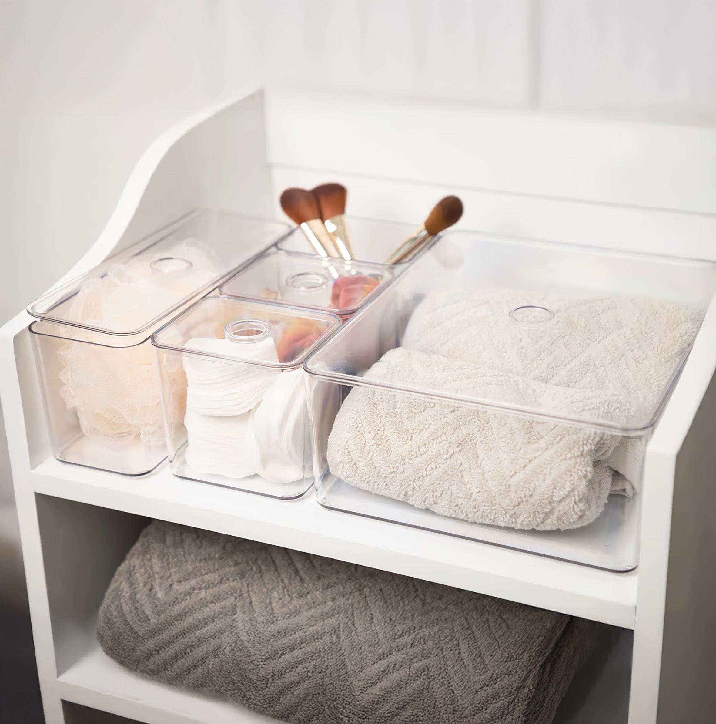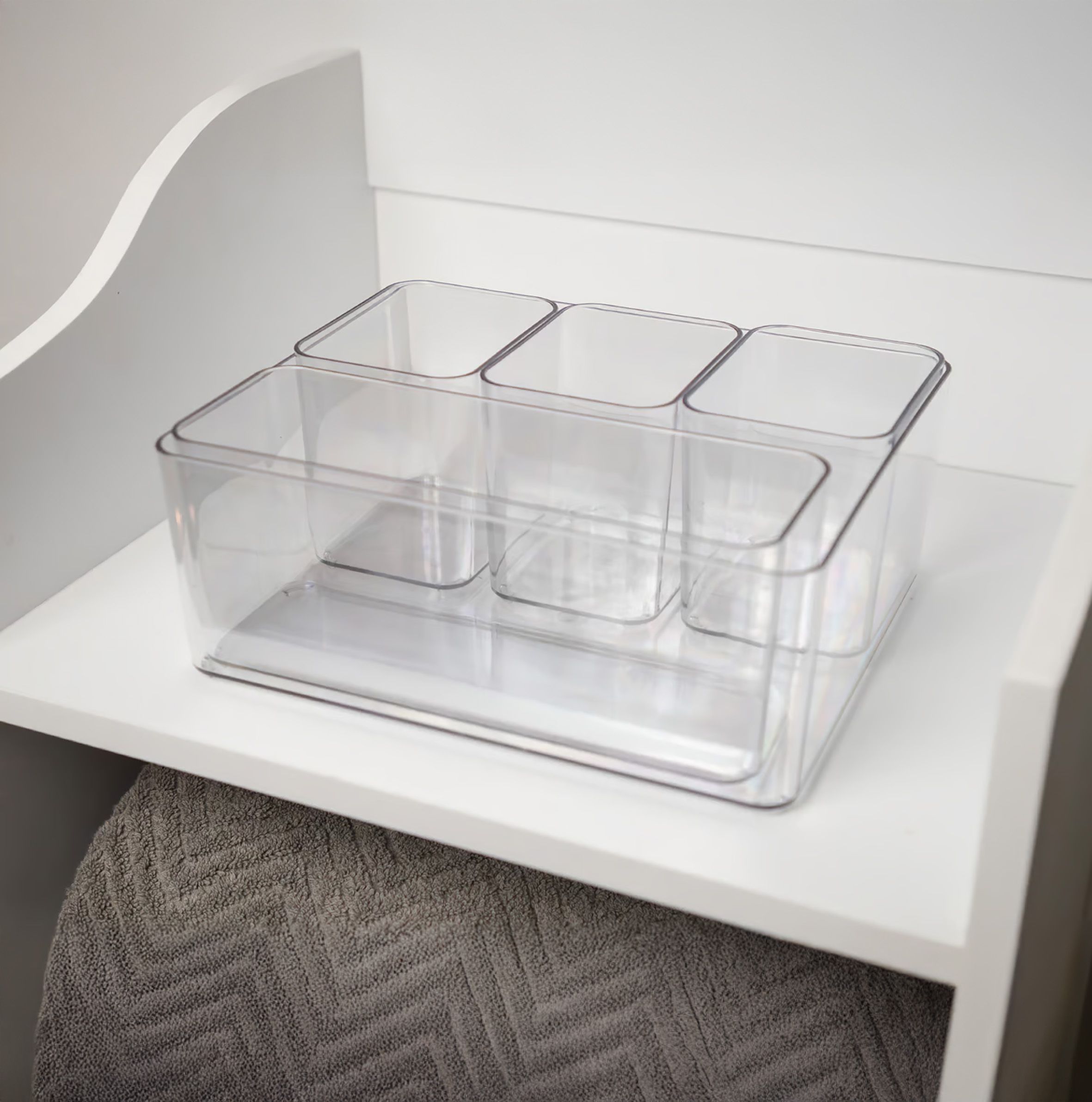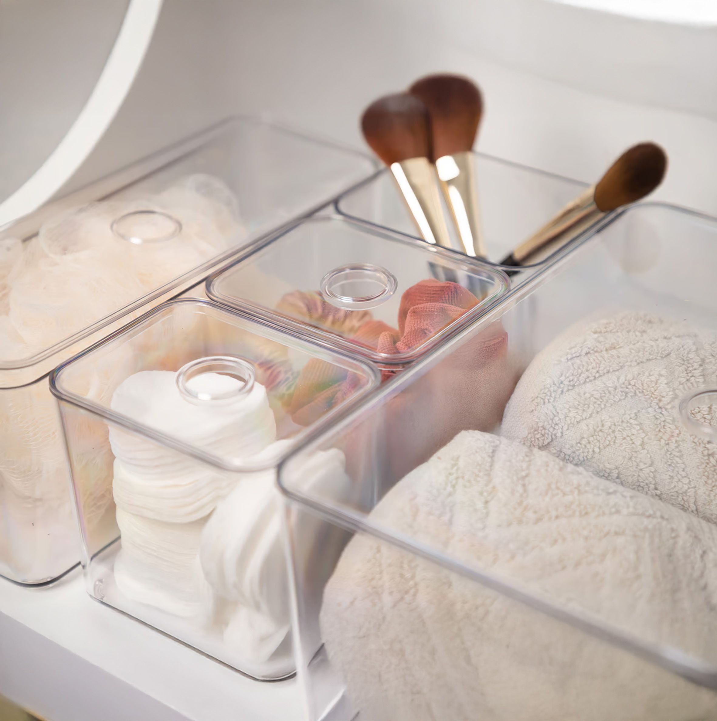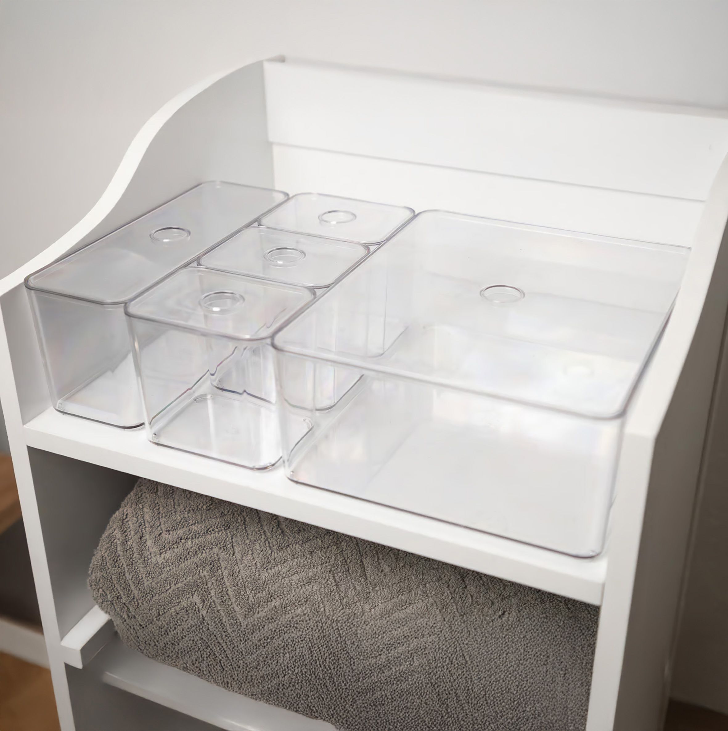 Organizer Box klar mit Deckel - 5er Set - Aufbewahrung Kästchen Küche Büro Bad