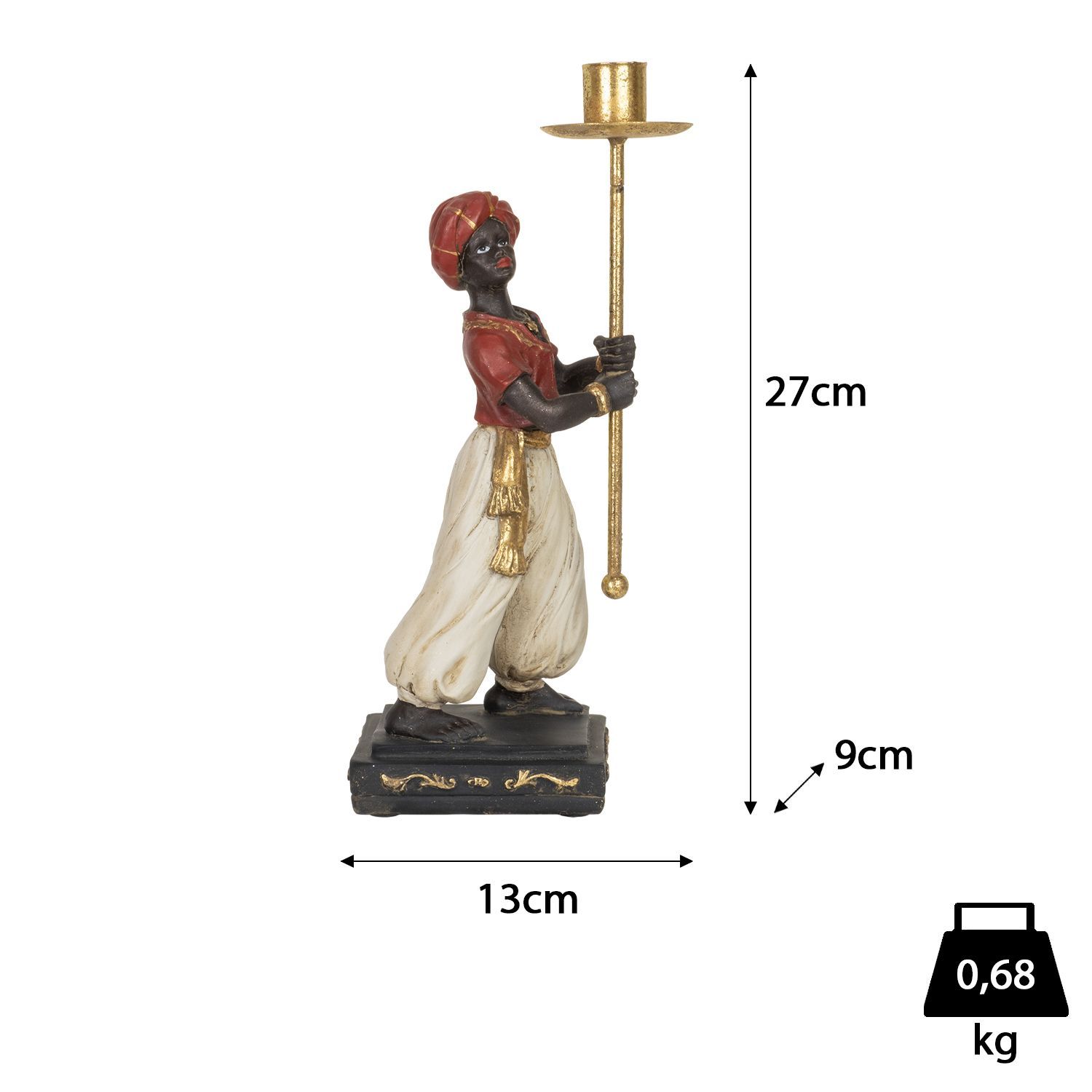 Orientalischer Kerzenhalter Figur 13 x 9 x 27 cm - Dekofigur mit goldener Halterun