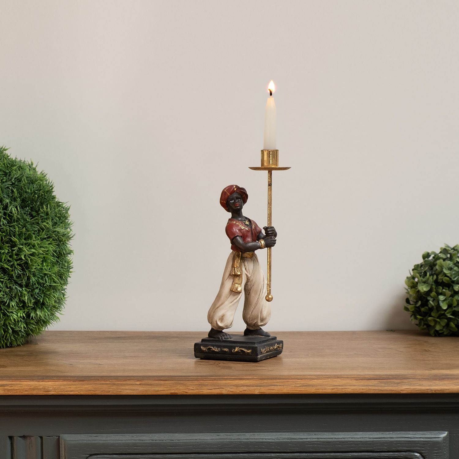 Orientalischer Kerzenhalter Figur 13 x 9 x 27 cm - Dekofigur mit goldener Halterung