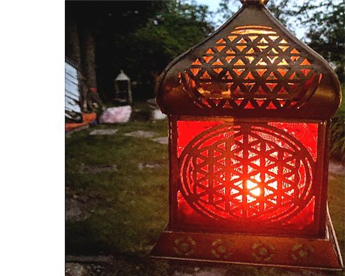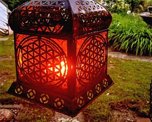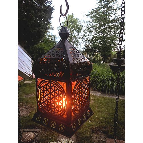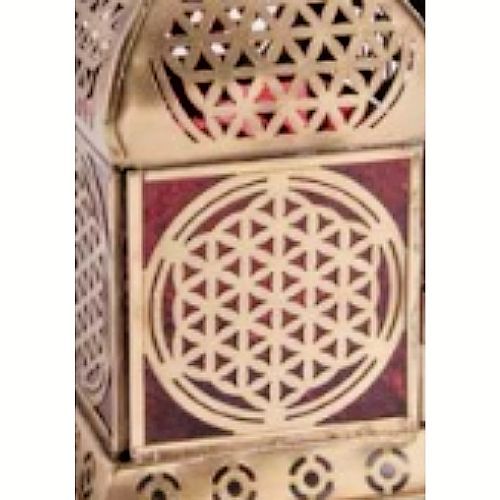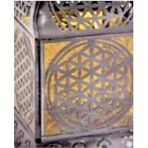 Orientalisches Windlicht BLUME DES LEBENS 23 cm Laterne Teelichthalter rot-gelb antik