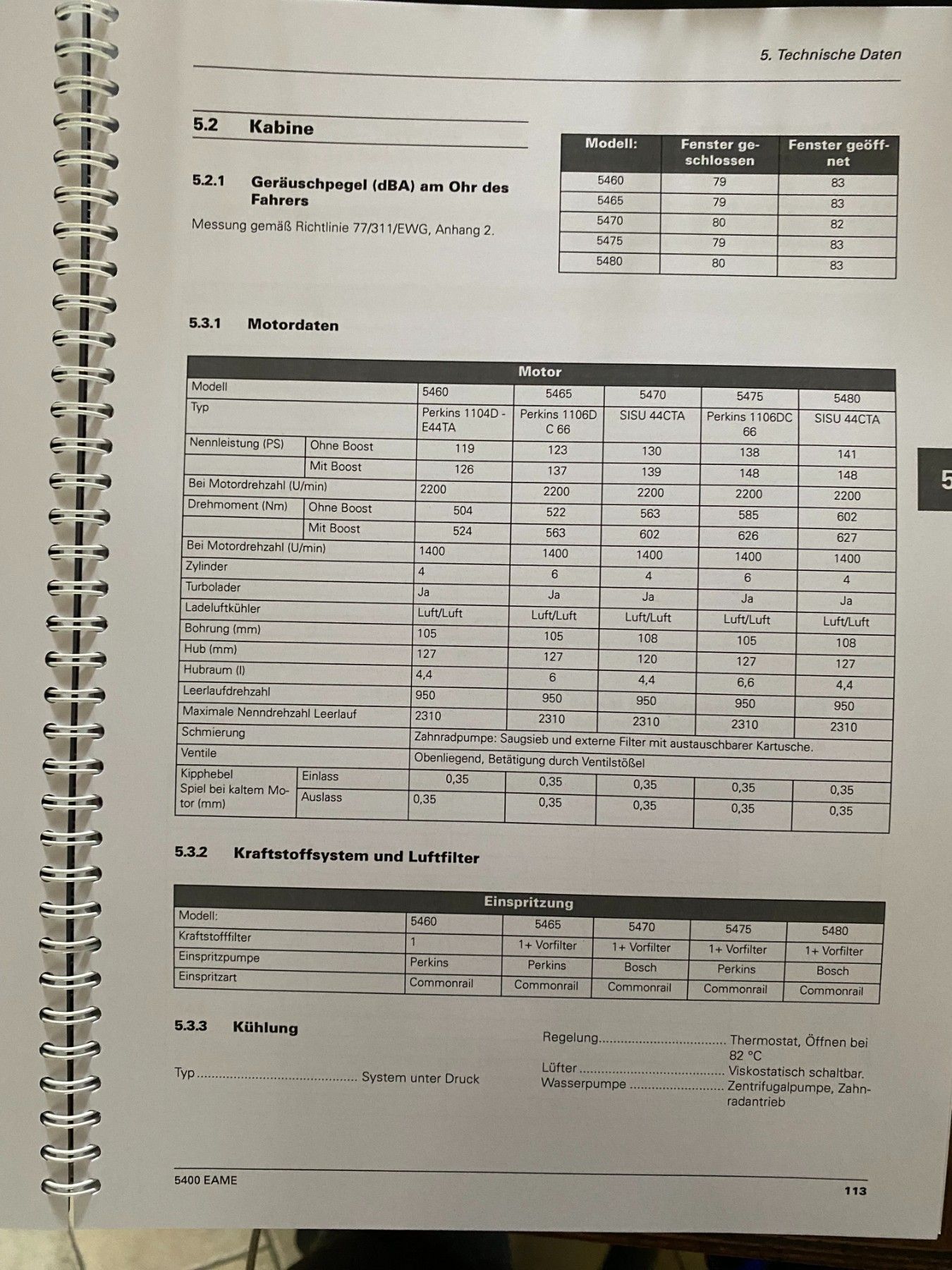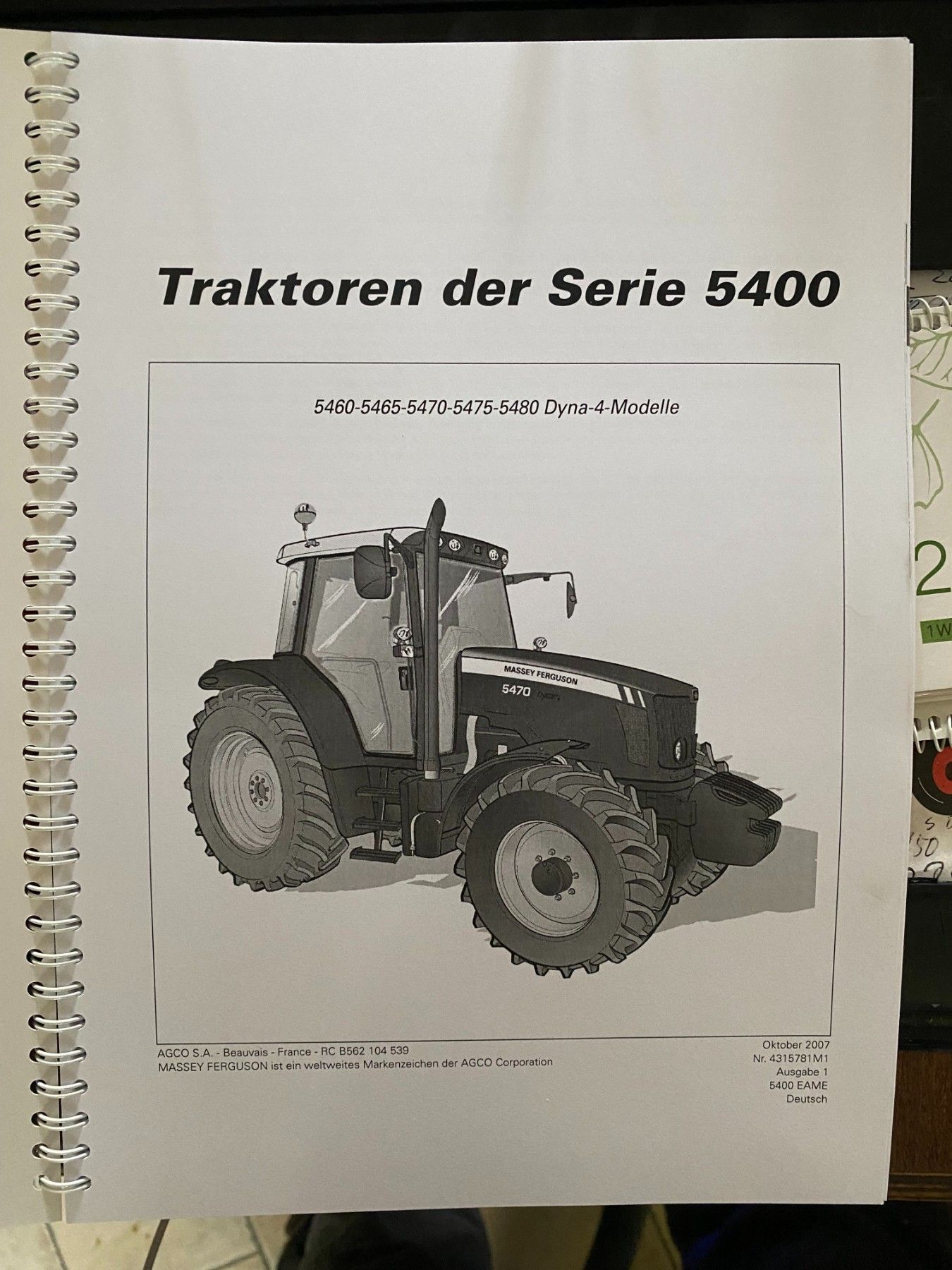 Orig Betriebsanleitung für die Traktoren Massey Ferguson Baureihe 5400 mit Fahrerhaus