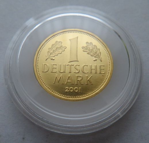 Original 1 DM 2001 Mark Goldmark 2001 F 12g 999er Gold in Münzdose
