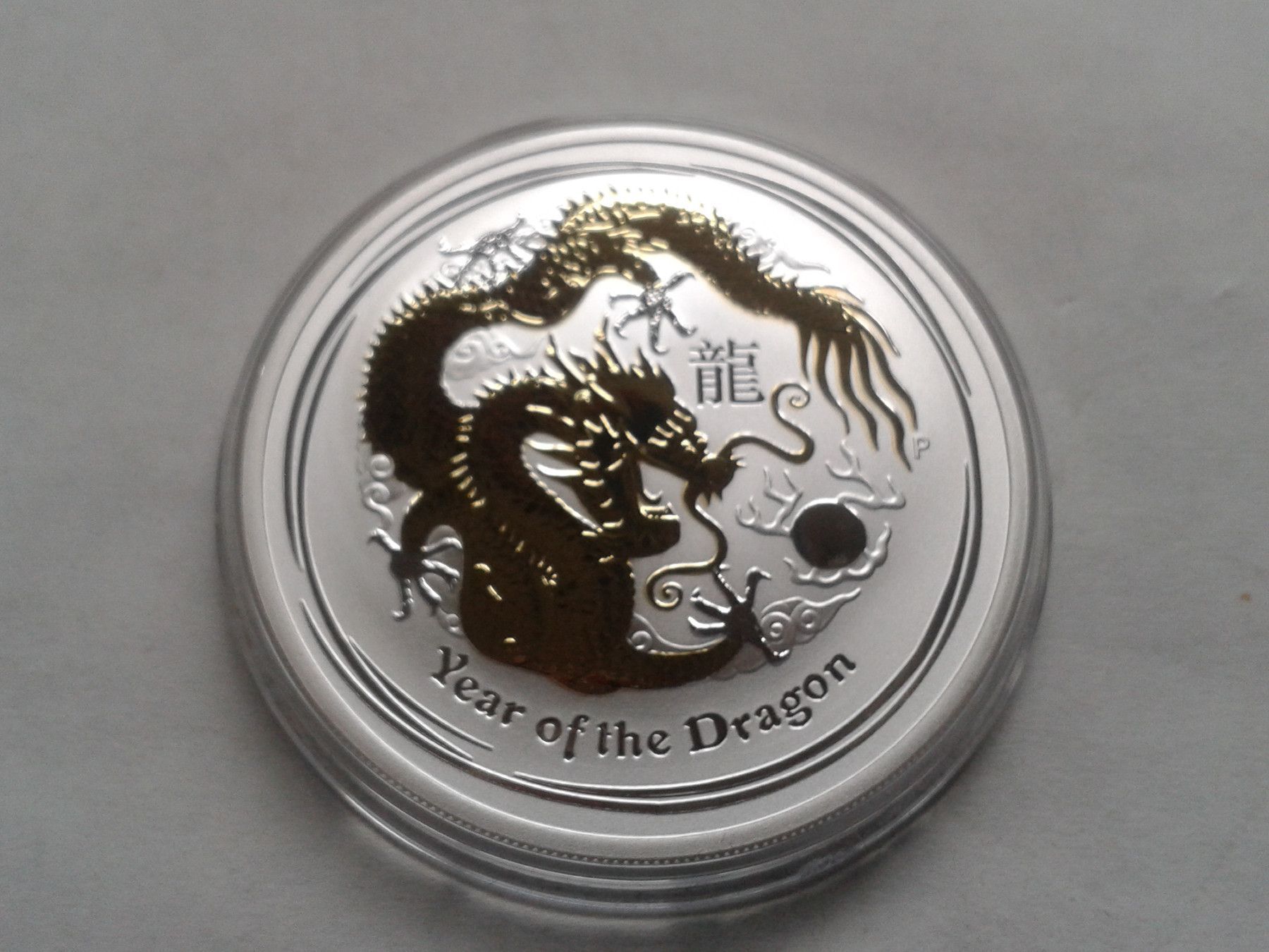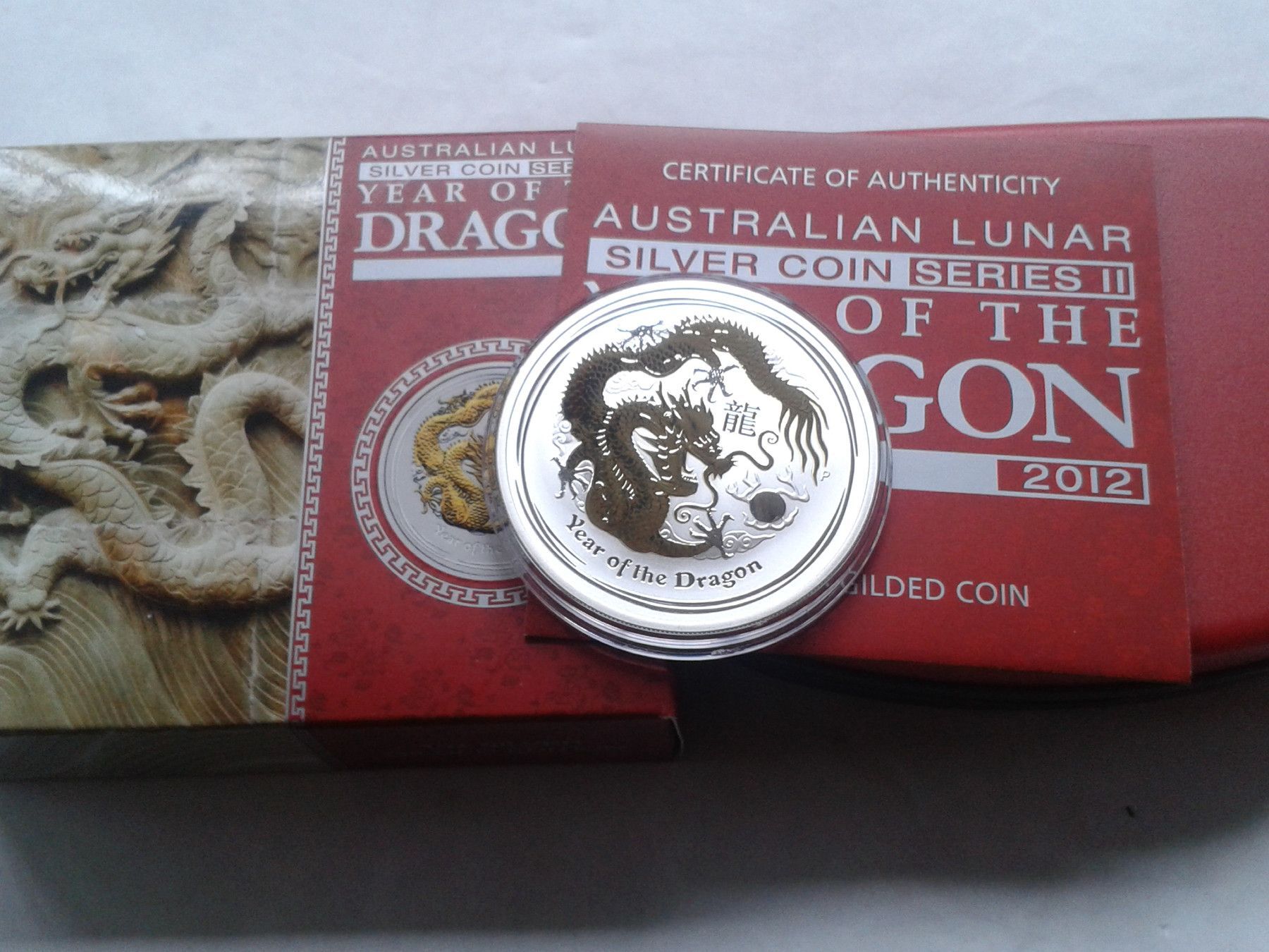 Original 1 Dollar 2012 PP Australlien Lunar Drache gilded Gold in Etui + COA
