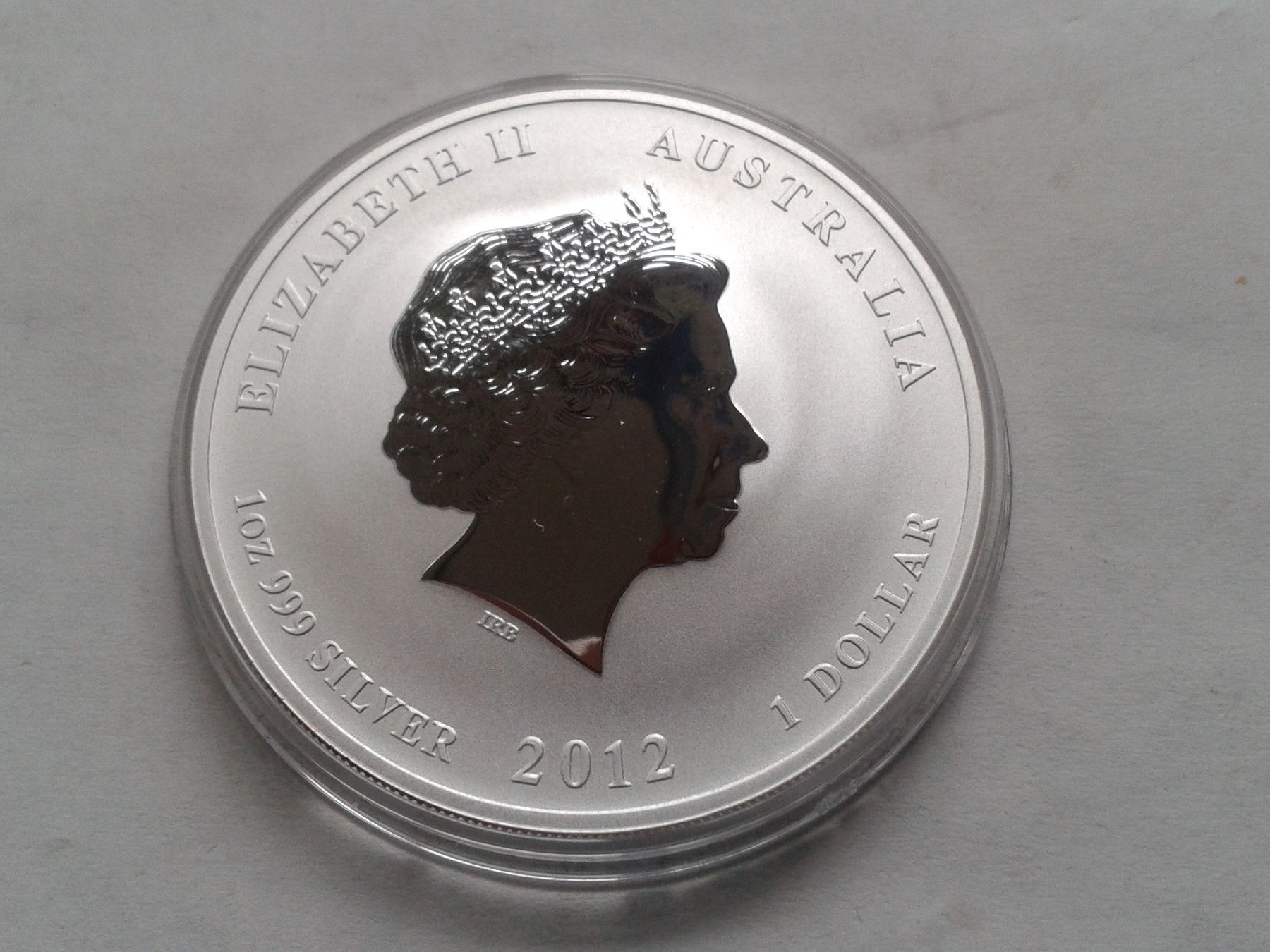 Original 1 Dollar 2012 PP Australlien Lunar Drache coloured Farbe in Etui + COA; 1 Unze 999er Silber in Münzdose, Etui, Umverpackung und Zertifikat Artikel ist gemäss UstG §25a differenzbesteuert