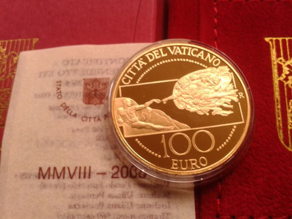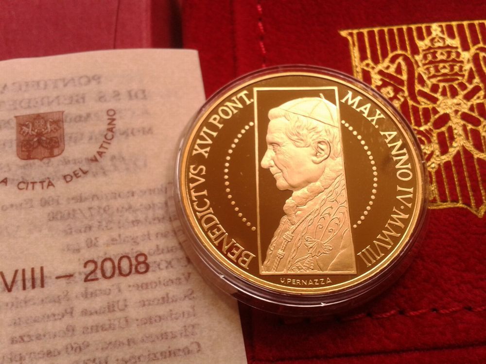 Original 100 euro 2008 PP Vatikan Papst Benedikt XVI. Die 1. 100 euro Goldmünze Vatik
