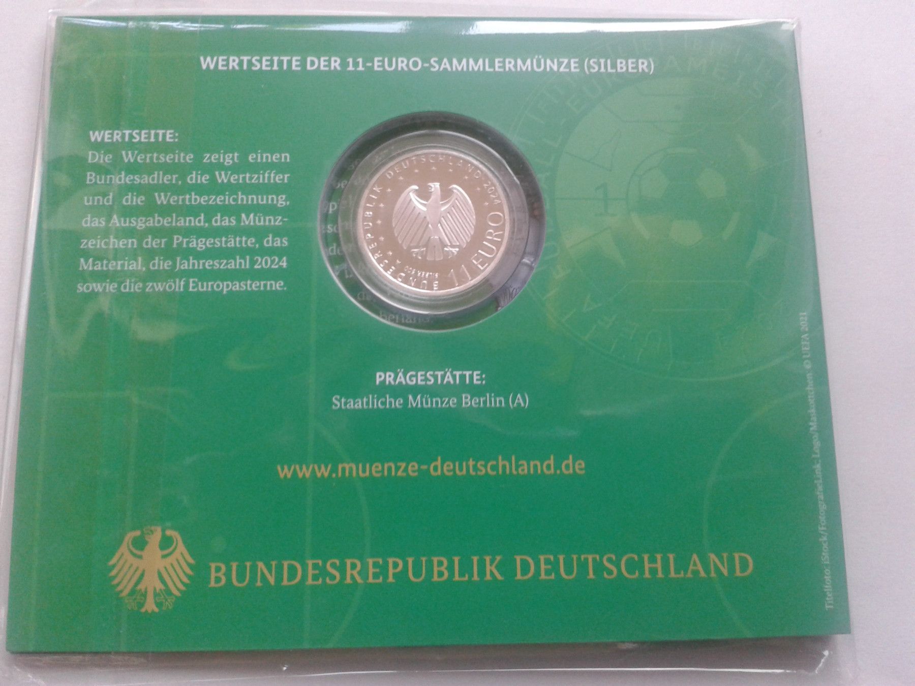 11 euro 2024 PP Fussball EM Deutschland, Prägestätte Berlin (A).noch im original verschweissten Blister. bei Fragen: