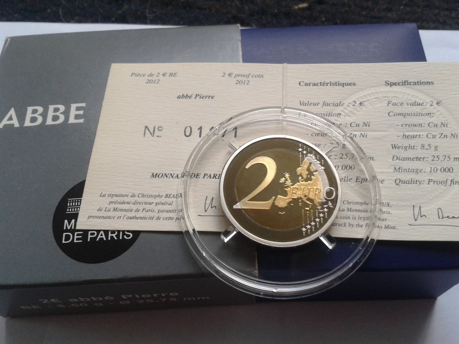 Original 2 euro 2012 PP Frankreich Abbe Pierre PP, proof, belle epreuve - RAR