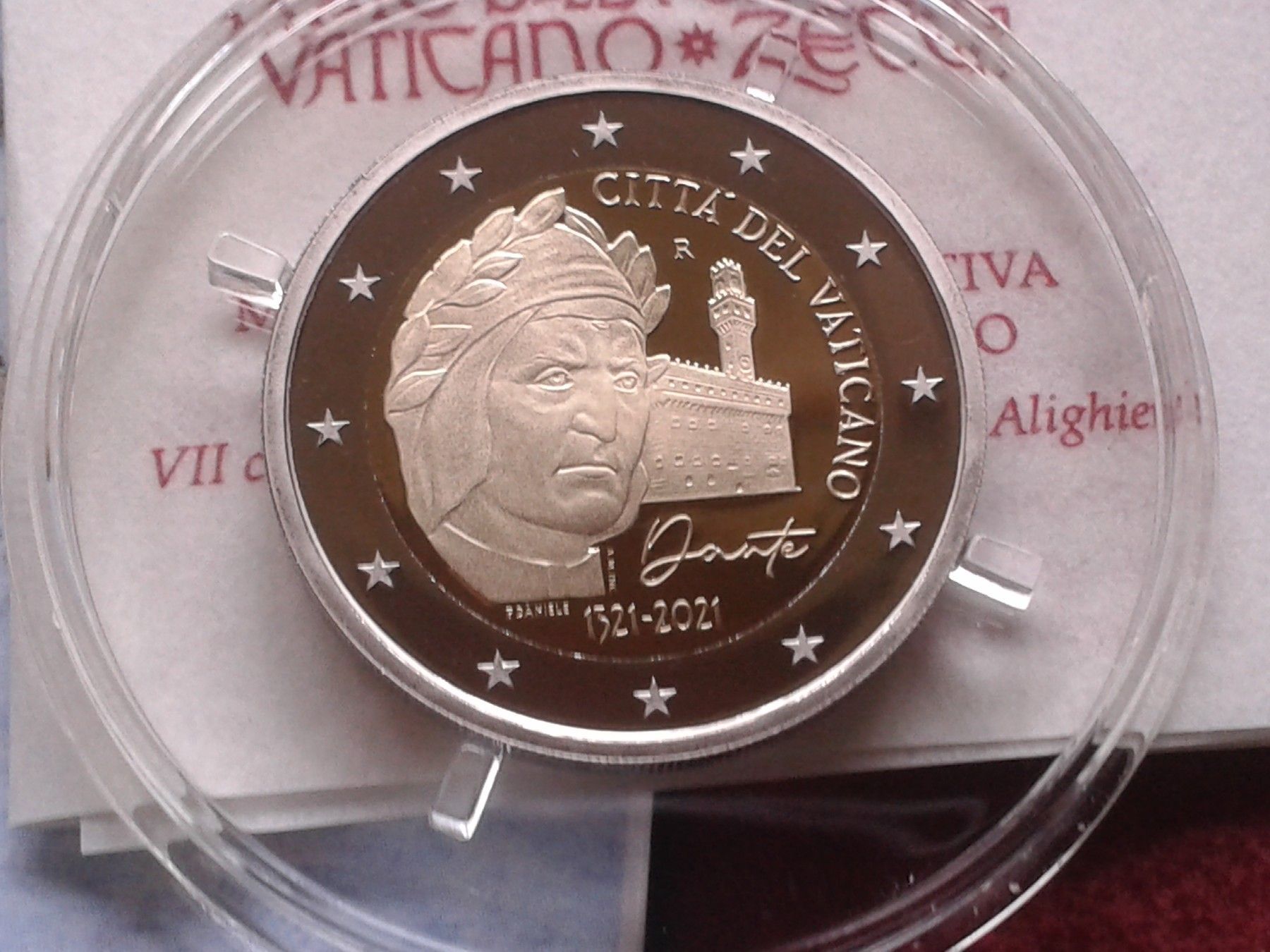 Original 2 euro 2021 PP Vatikan Dante Alighieri im Etui mit COA+Umverpackung , sofort lieferbar. bei Fragen: