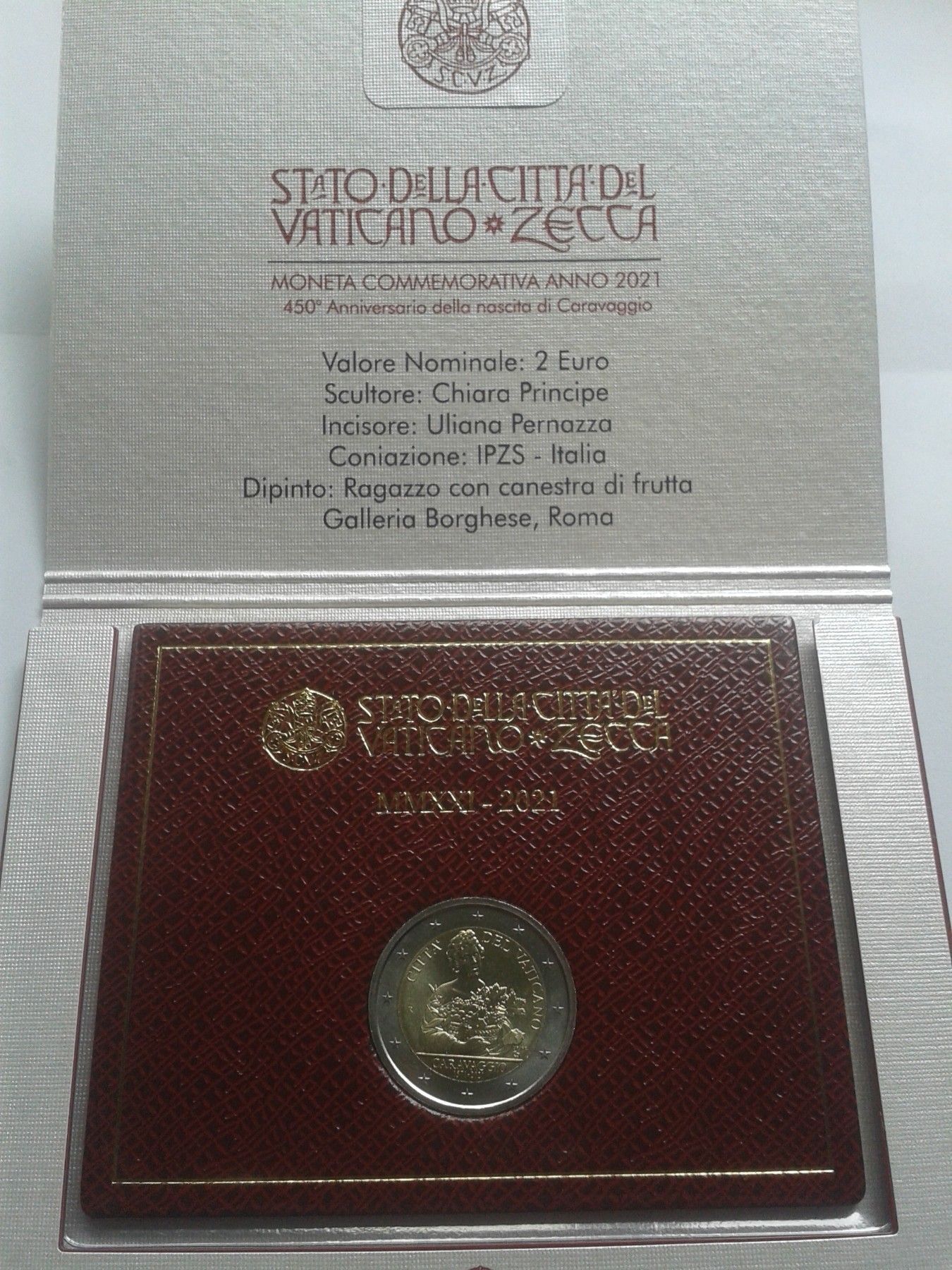 Original 2 euro 2021 Vatikan Geburtstag Caravaggio im Folder