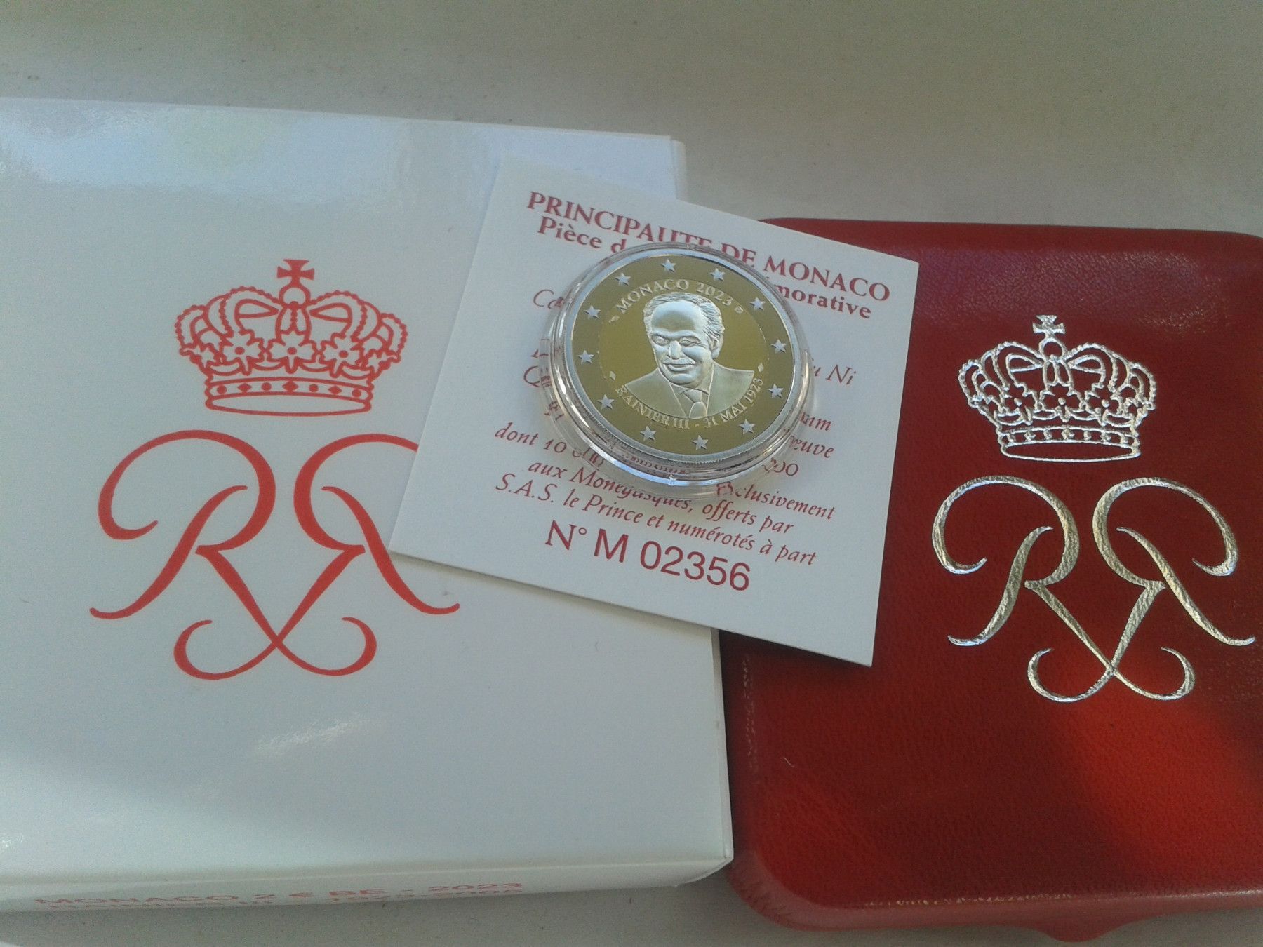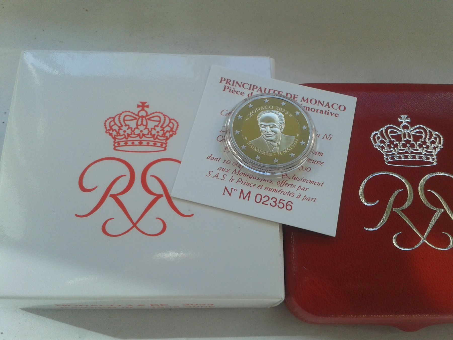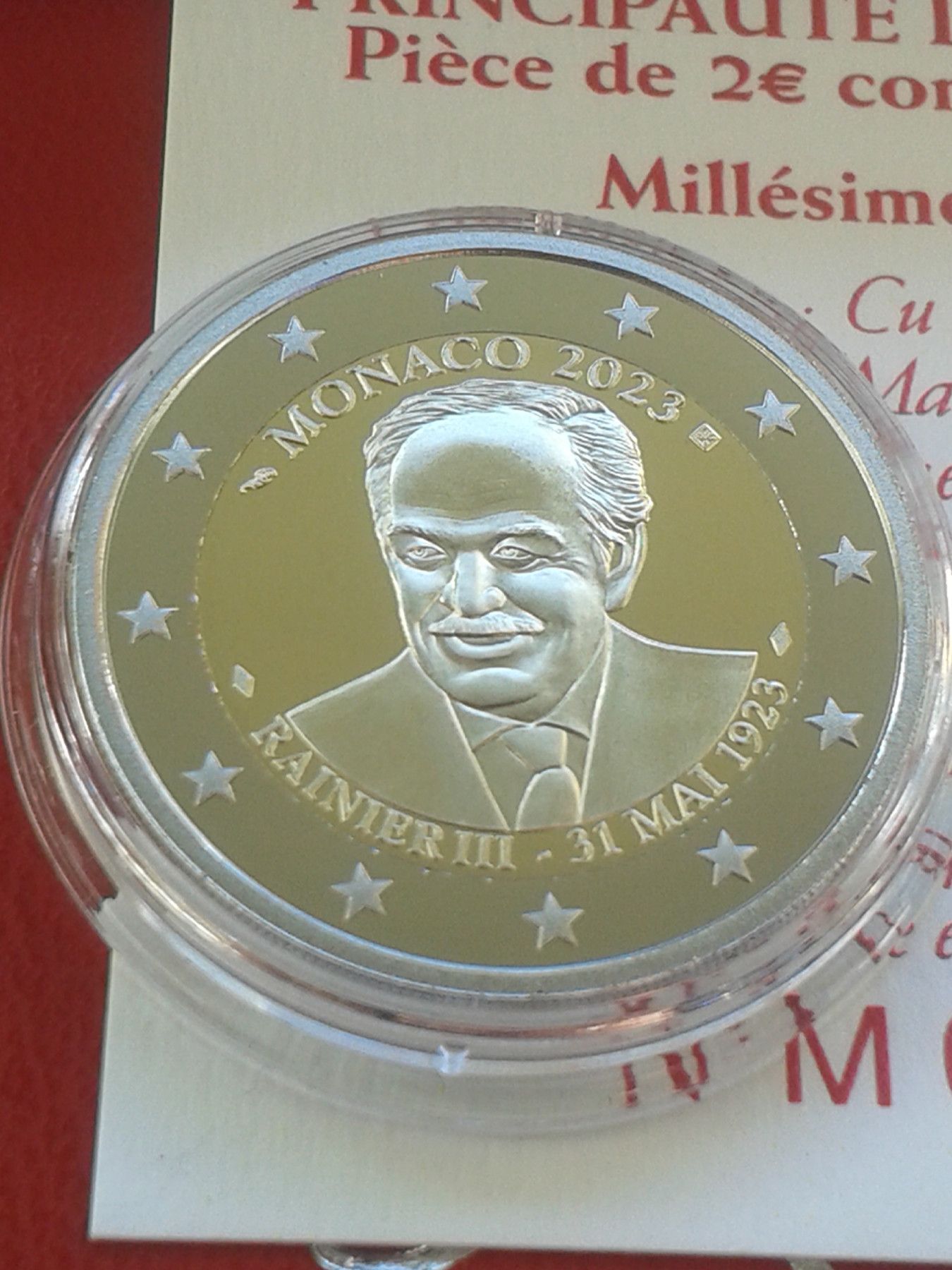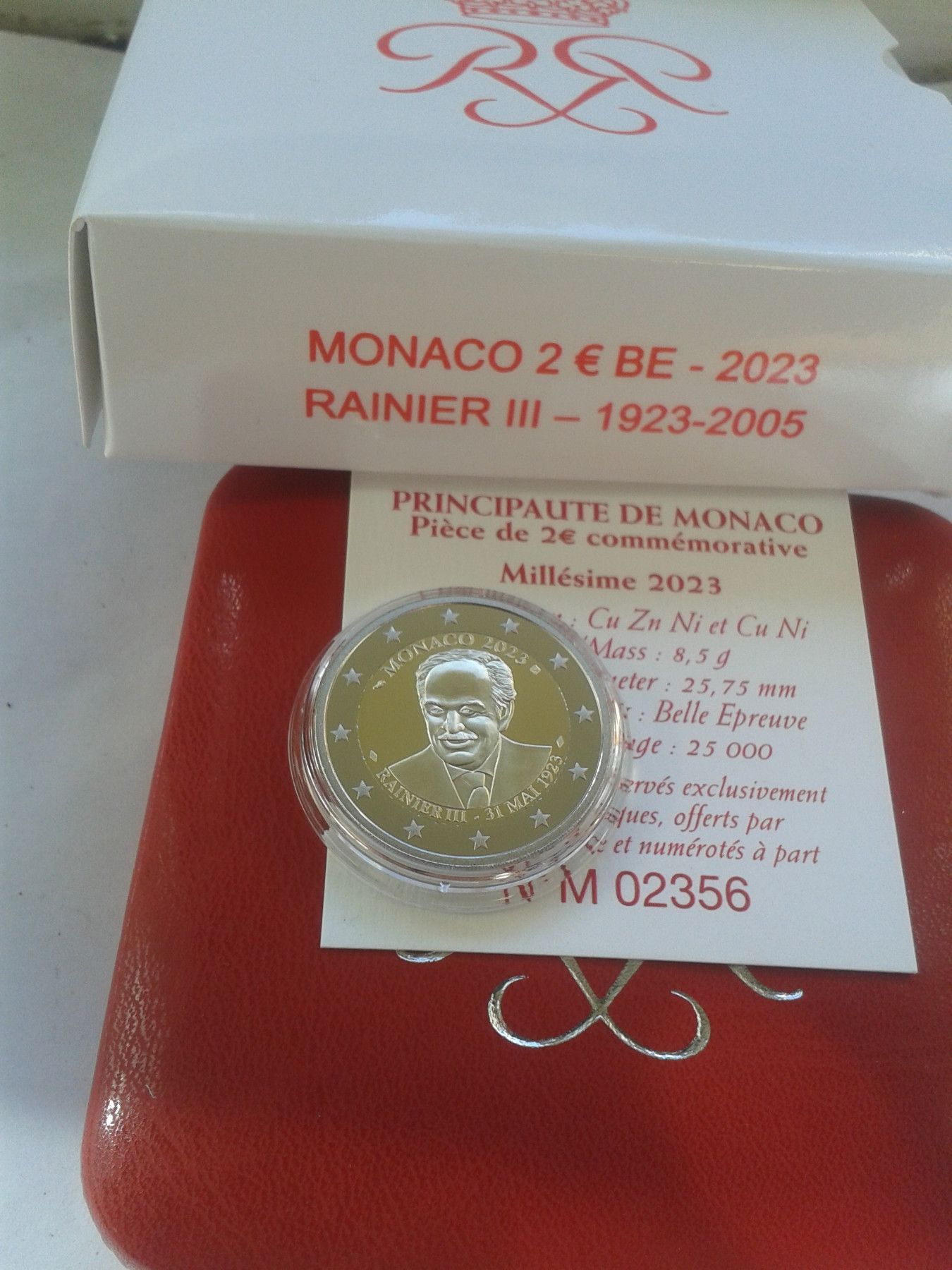 Original 2 euro 2023 PP Monaco Fürst Rainier III. Rote Box red Box für Einwohnerausg.