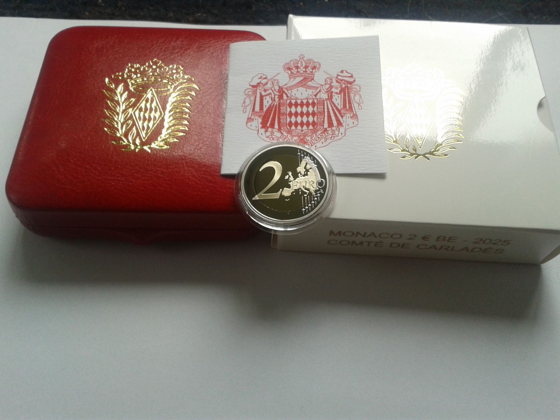 Original verpackt mit Etui, Zertifikat und Umverpackung, 2 euro 2025 PP Monaco Carlades. Artikel ist gemäss UstG§25a differenzbesteuert bei Fragen: