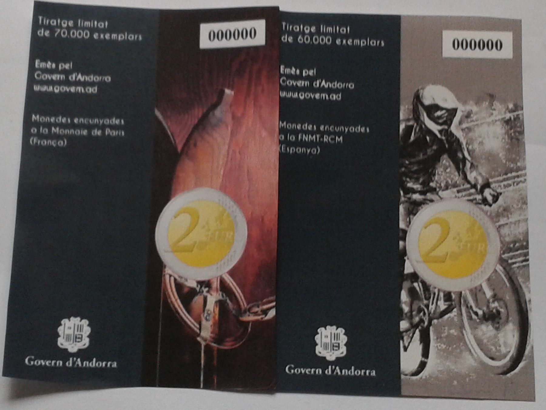 Original 2 x 2 euro 2024 Andorra coincards Mountainbike und 100 Jahre Ski