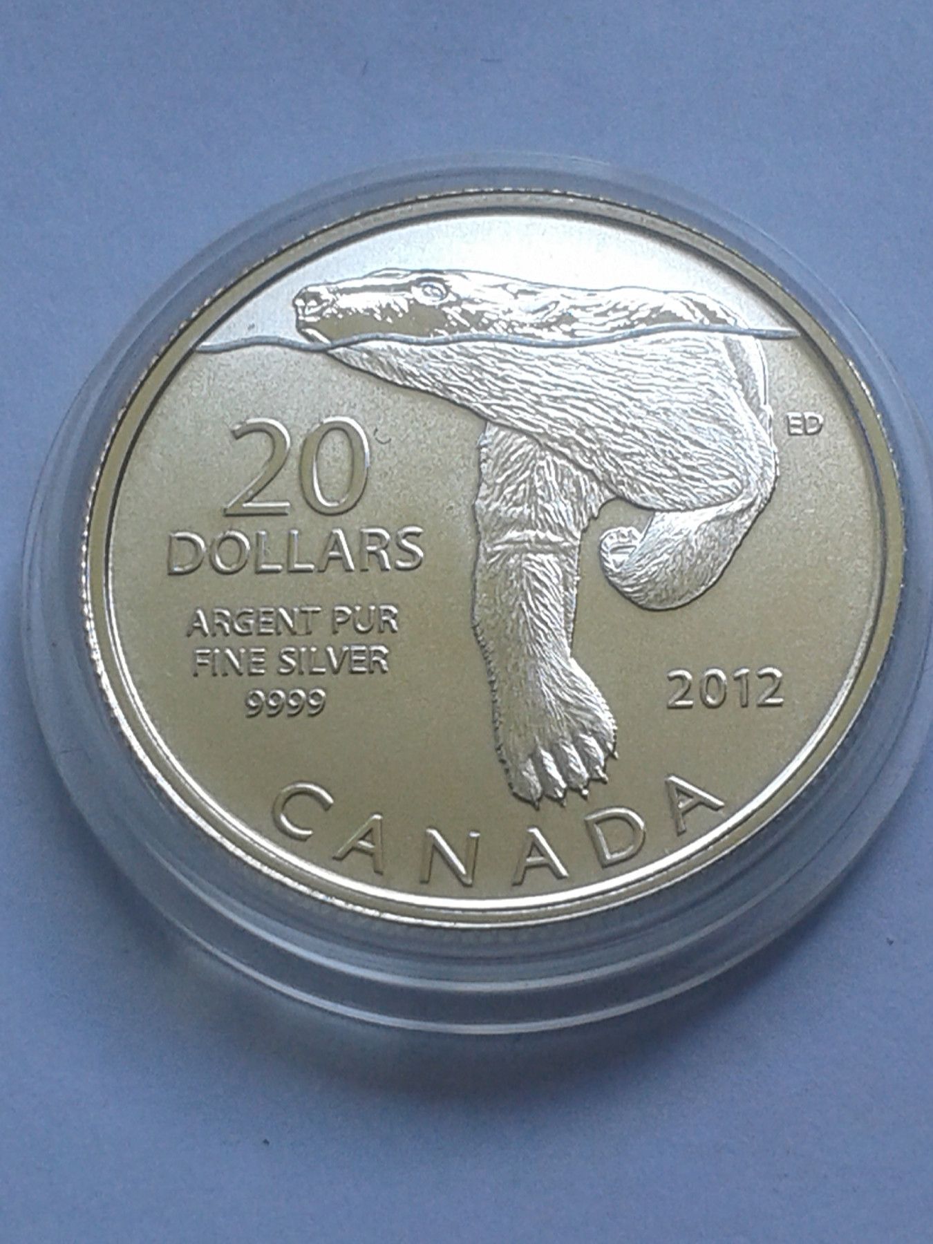 Original 20$ 2012 Kanada Polarbär Eisbär 1/4 Unze Silber 9999 20 Dollars 2012 Canada