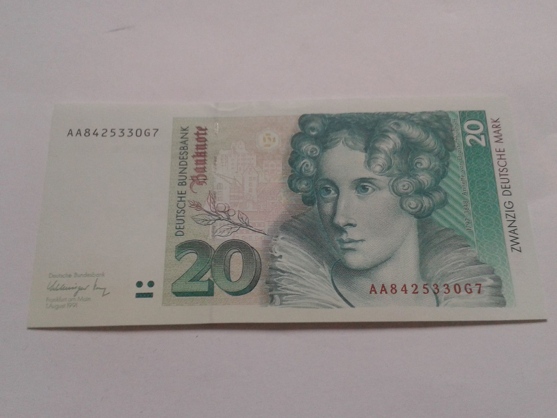Original 20 DM 1996 Banknote 20 Mark 1996 20 D-Mark 1996 Banknote