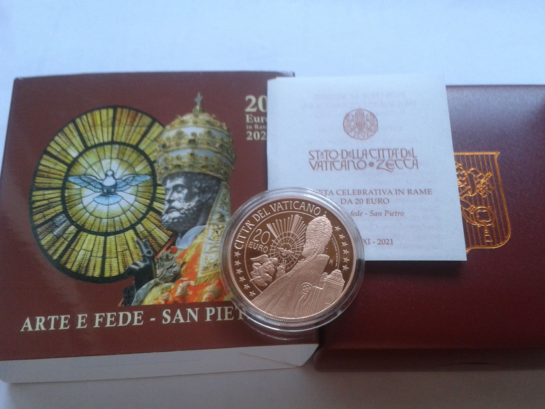 Original 20 euro 2021 PP Vatikan Kunst und Glaube Heiliger Petrus Kupfermünze
