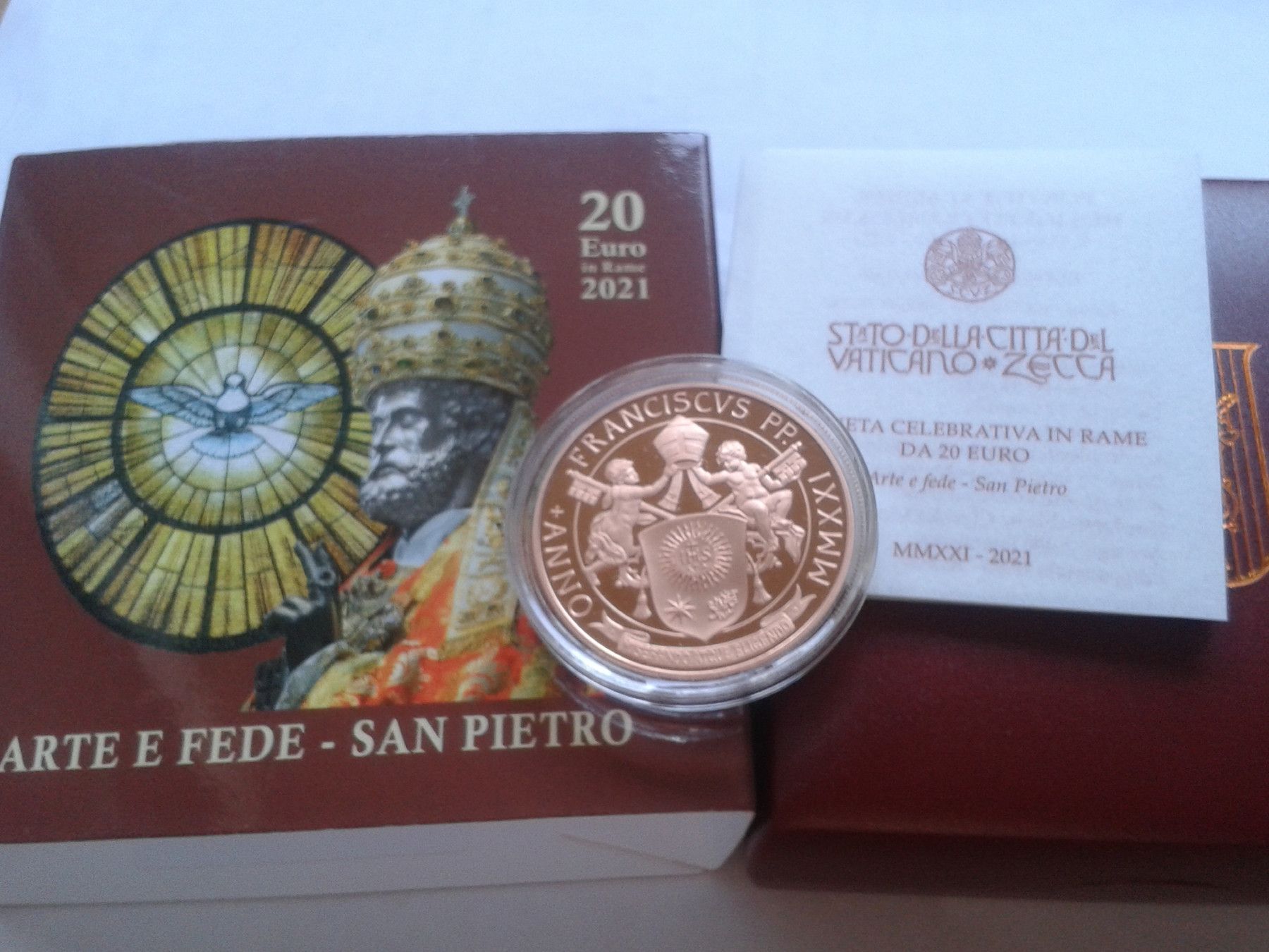 Original 20 euro 2021 PP Vatikan Kunst und Glaube Heiliger Petrus Kupfermünze die Münze unterliegt gemäss UstG §25a der Differenzbesteuerung bei Fragen: