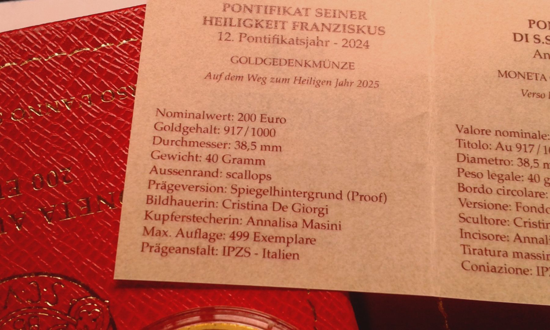 Original 200 euro 2024 PP Vatikan Heiliges Jahr 40g Gold 917er - RAR