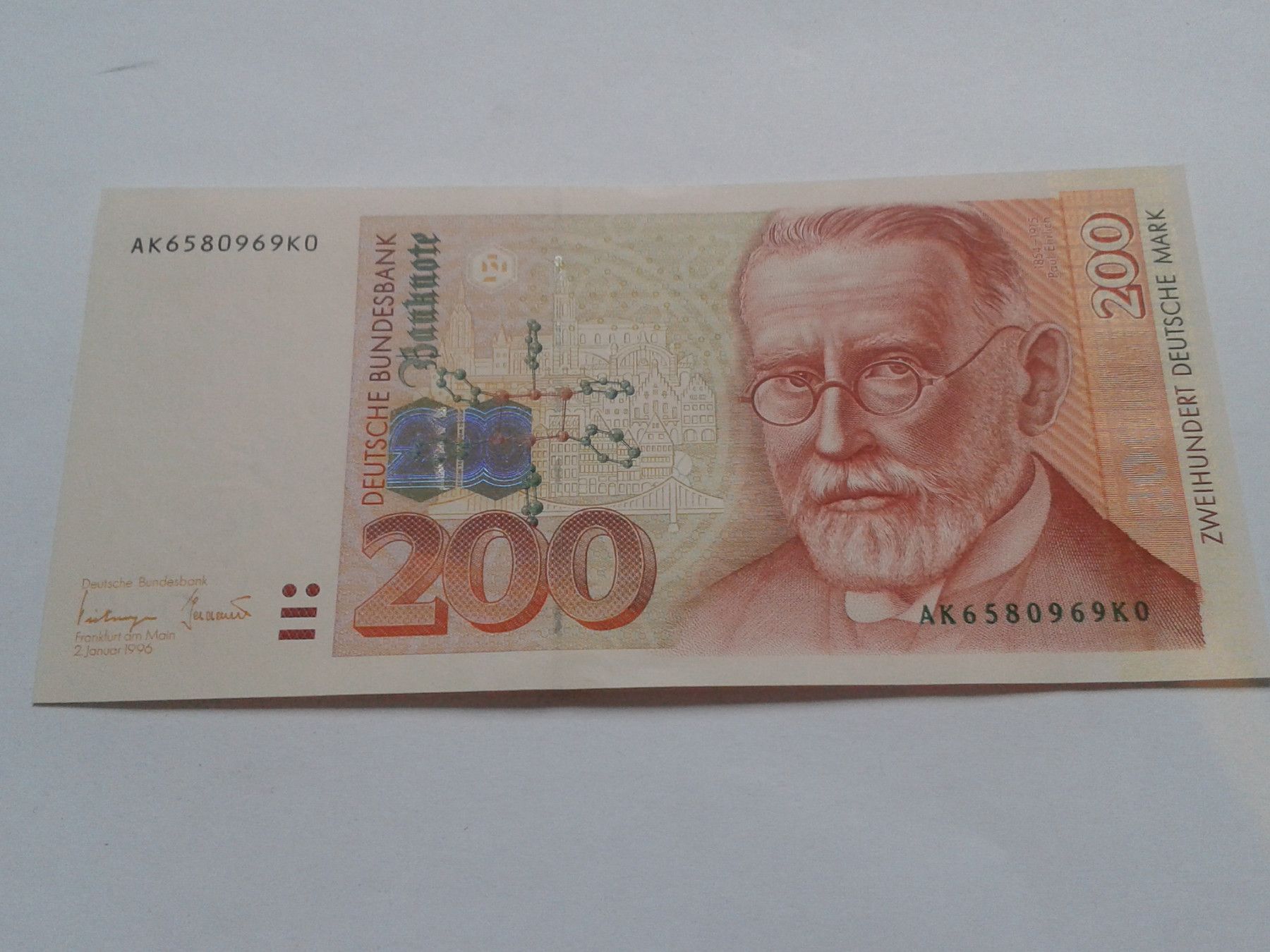 Original 200 Mark 1996 Banknote 200 D-Mark 1996 Ehrlich 200 DM 1996 Banknote Ehrlich