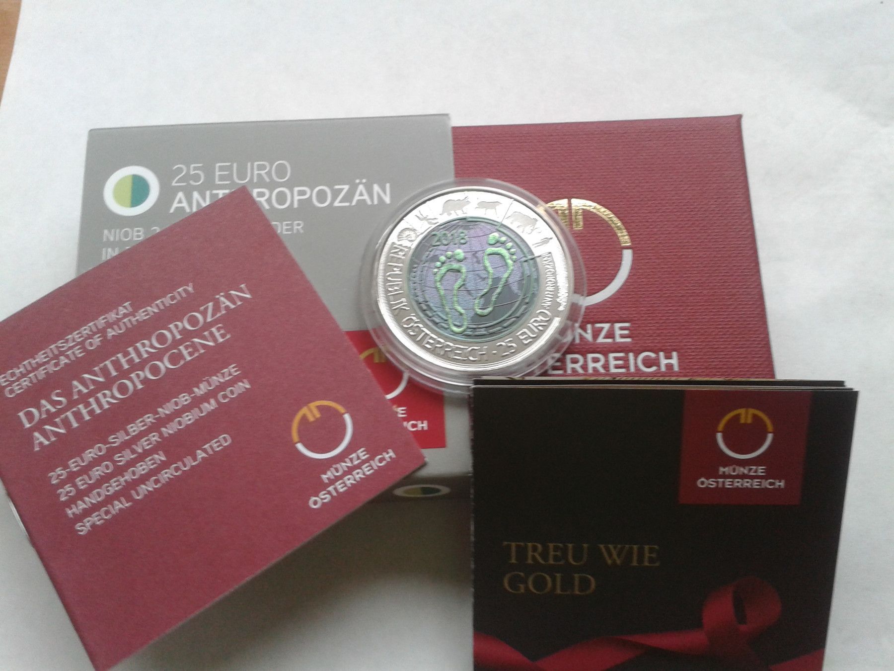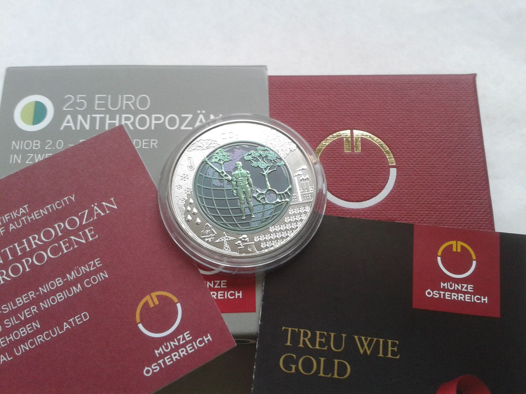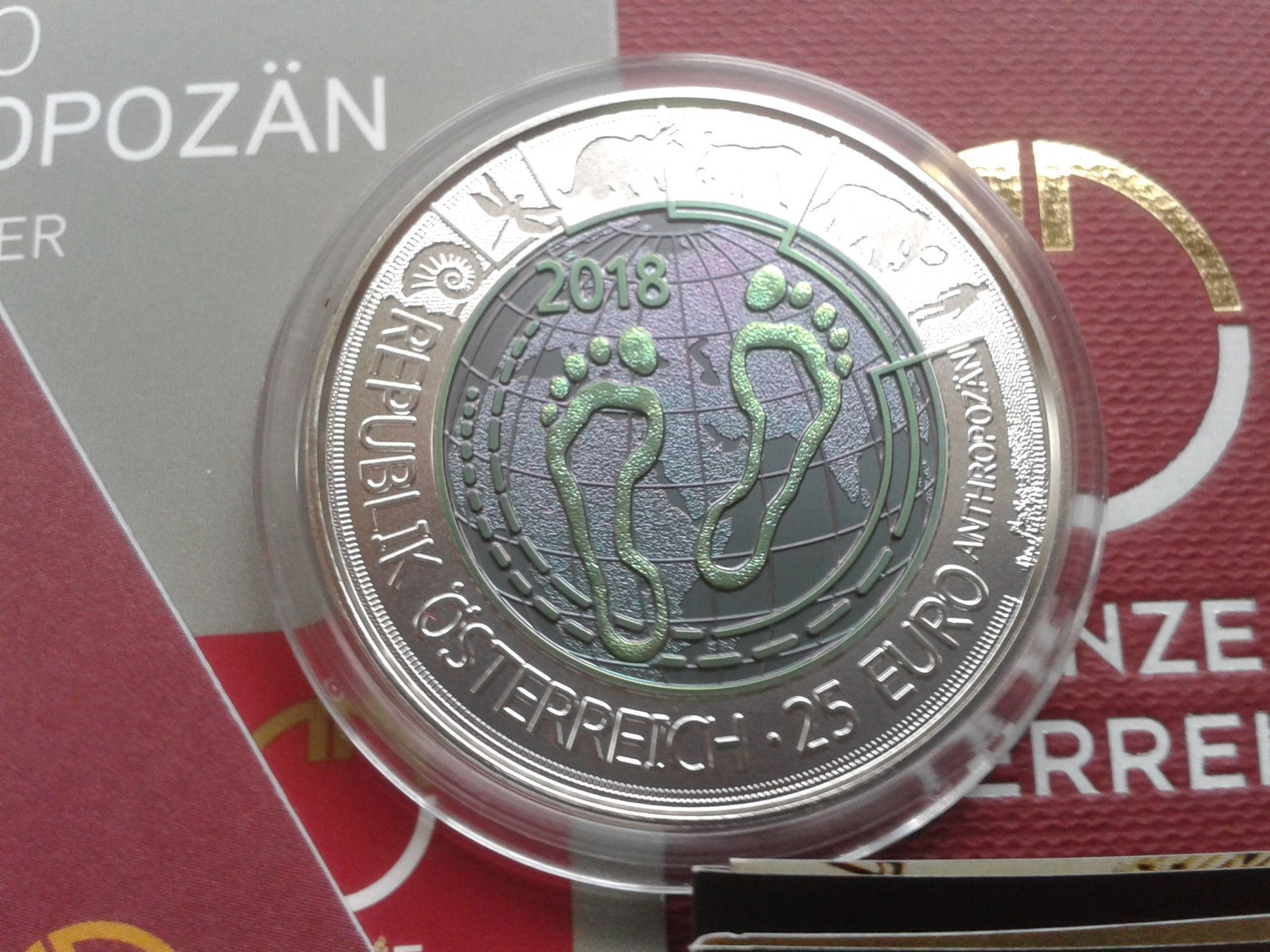 Original 25 euro 2018 Österreich Anthropozän Der Mensch Silber-Niob hangehoben (hgh)