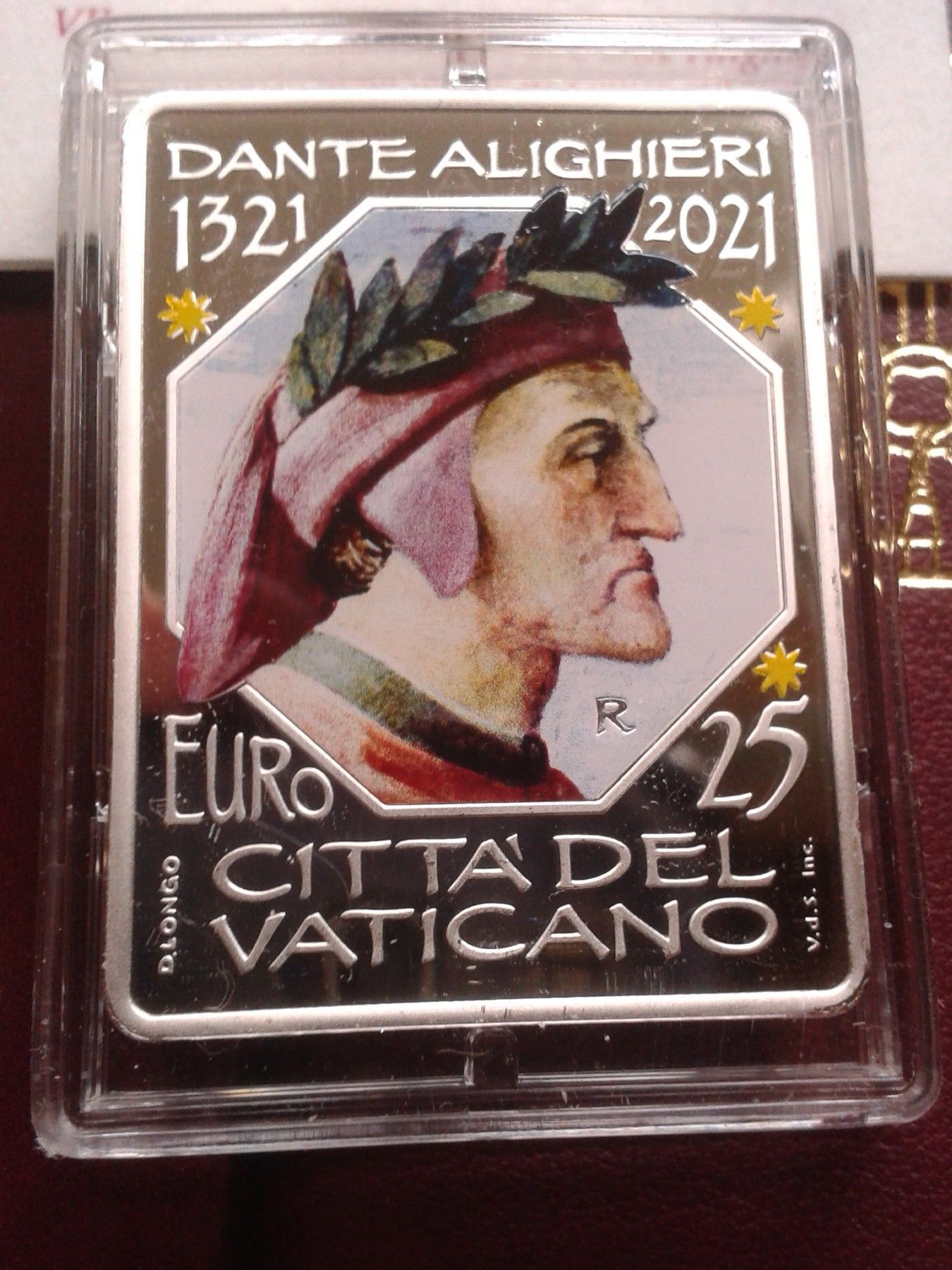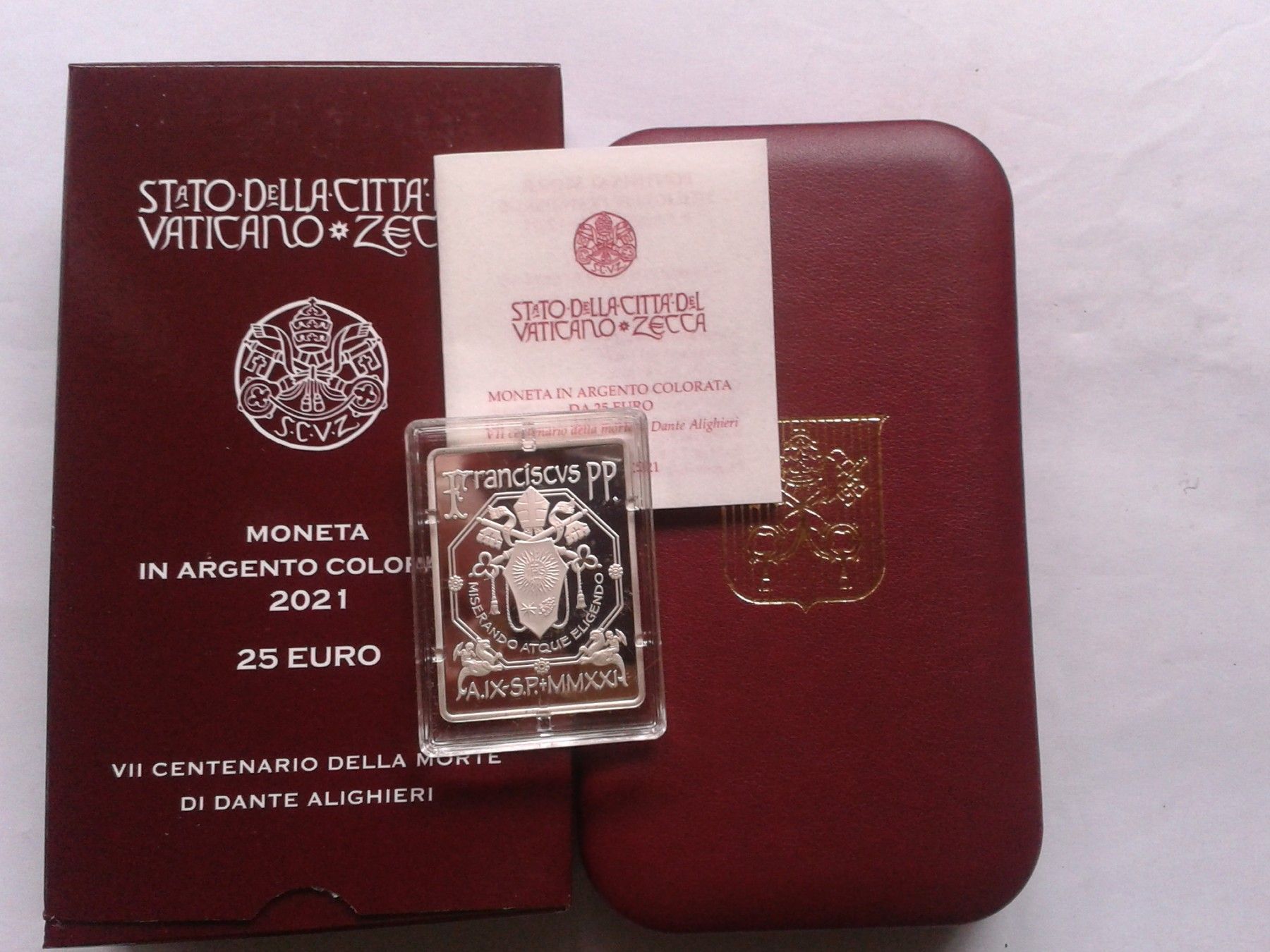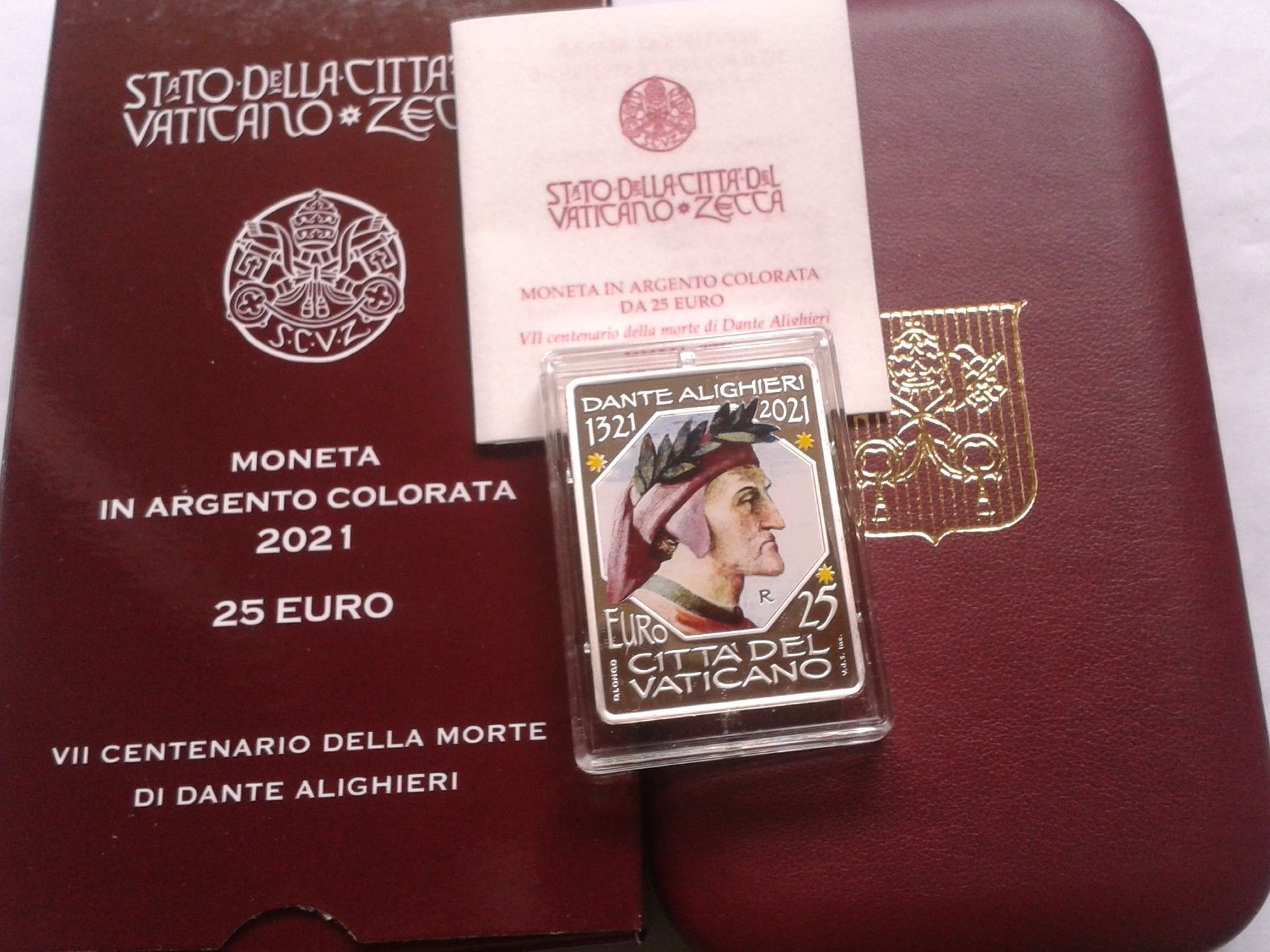 Original 25 euro 2021 PP Vatikan Dante Aligheri coloriert Silber im Etui 25€ 2021 PP