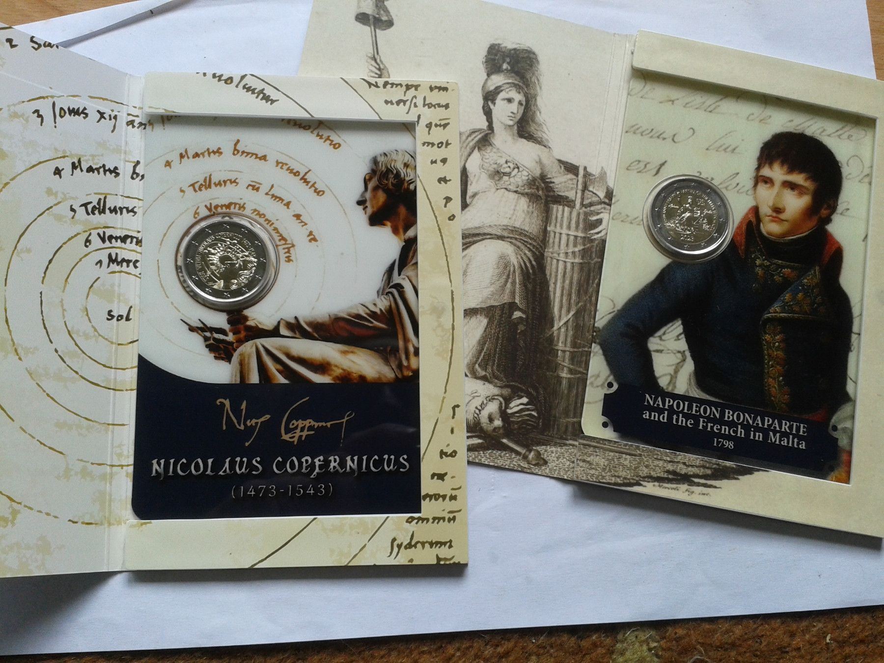 Original 2x2 euro 2023 Malta Napoleon und Copernikus coincards im Blster