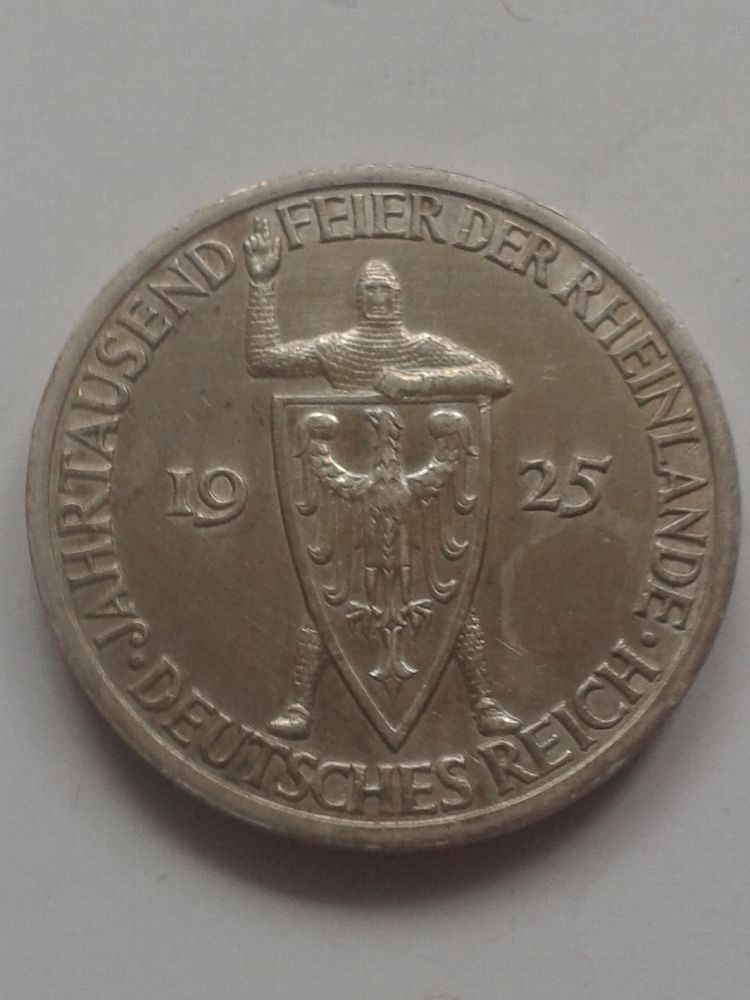 Original 3 Reichsmark 1925 A Rheinlande - sehr gut erhaltenes Exemplar