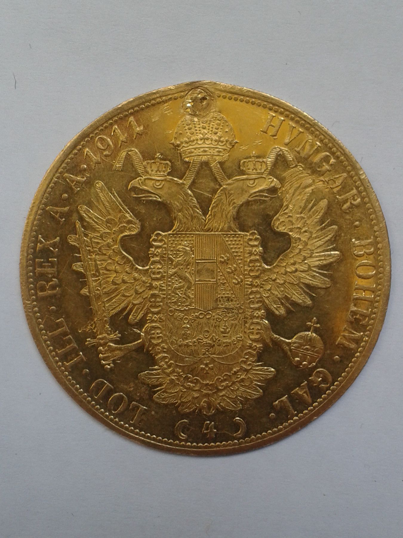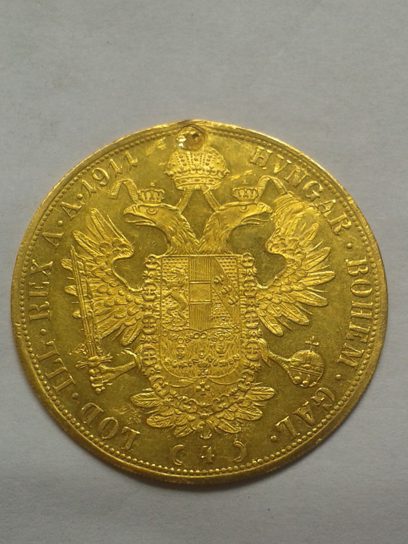 4 Dukaten 1911, Originalmünze, ca. 13,88g Gold, Erhaltung vz, siehe Bilder, gestopftes Loch Literatur: Her. 66 Artikel ist gemäss UstG§25a differenzbesteuert bei Fragen: