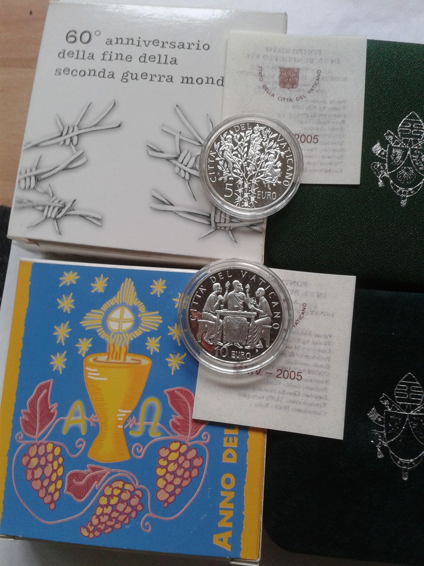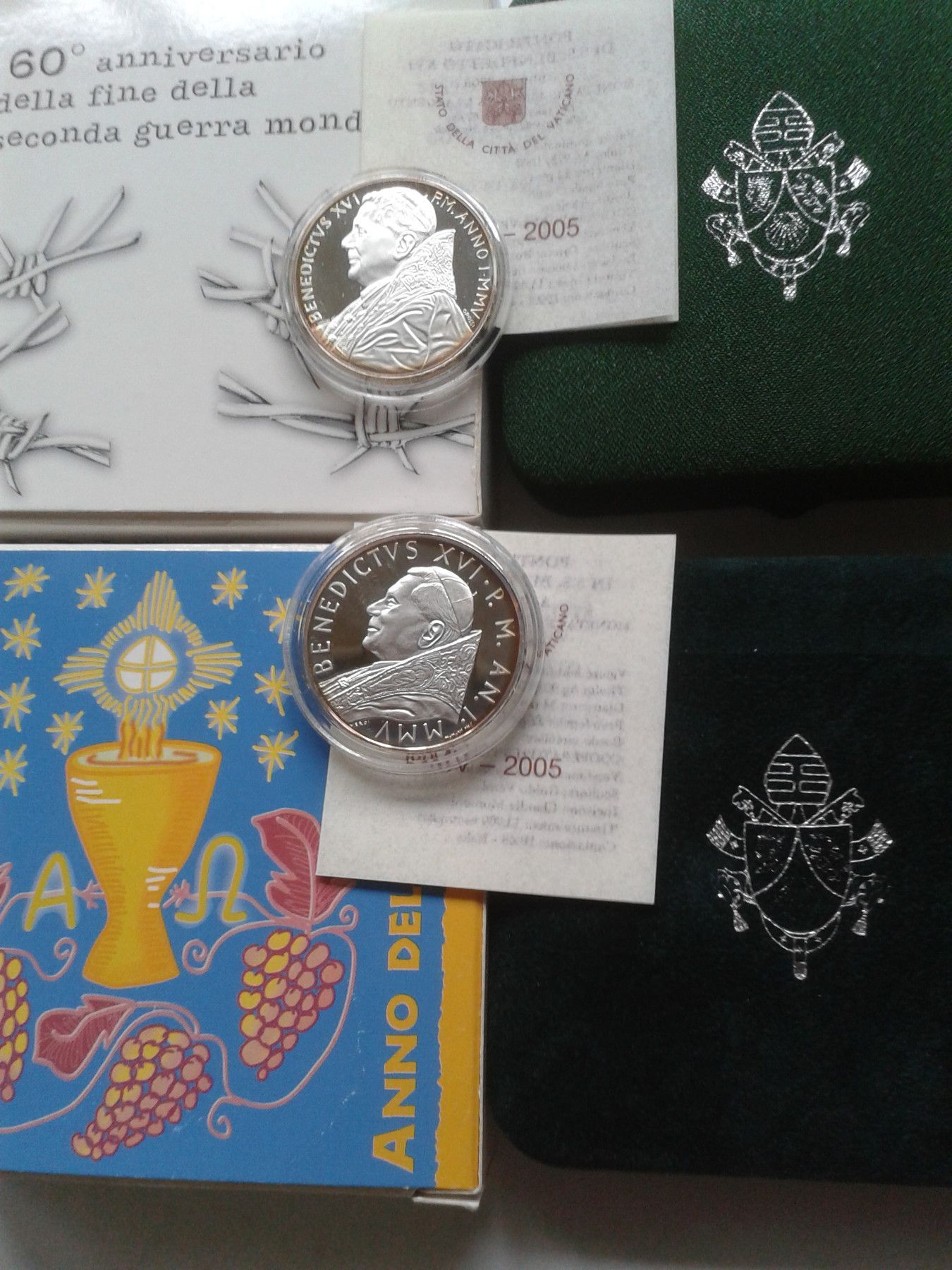 Original 5+10 euro 2005 PP Vatikan Silber Papst Benedikt XVI., 40g Silber Frieden+Eucharistie Original verpackt mit Etui, Zertifikat und Umverpackung. bei Fragen: