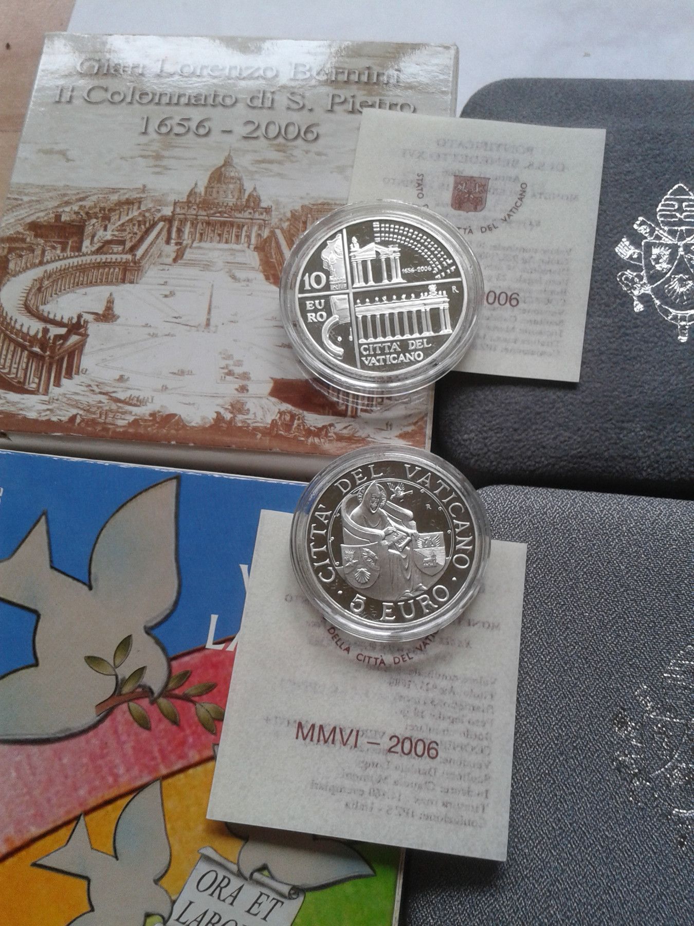 Original 5+10 euro 2006 PP Vatikan Silber Papst Benedikt XVI., 40g Silber Kolonaden am Petersplatz+Weltfriedenstag Original verpackt mit Etui, Zertifikat und Umverpackung. bei Fragen: