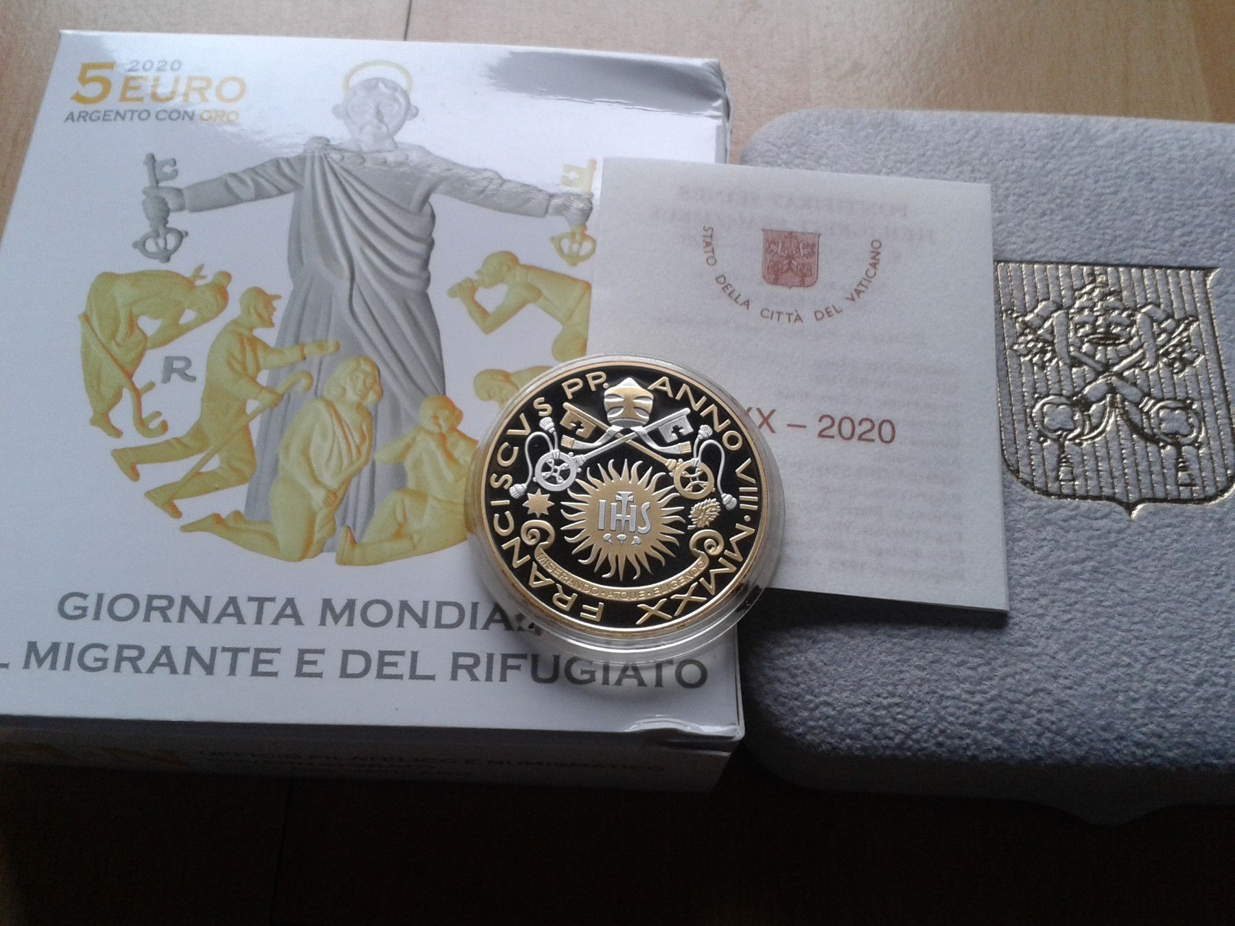 Original 5 euro 2020 PP Vatikan Welttag der Migranten Silber vergolded gilded