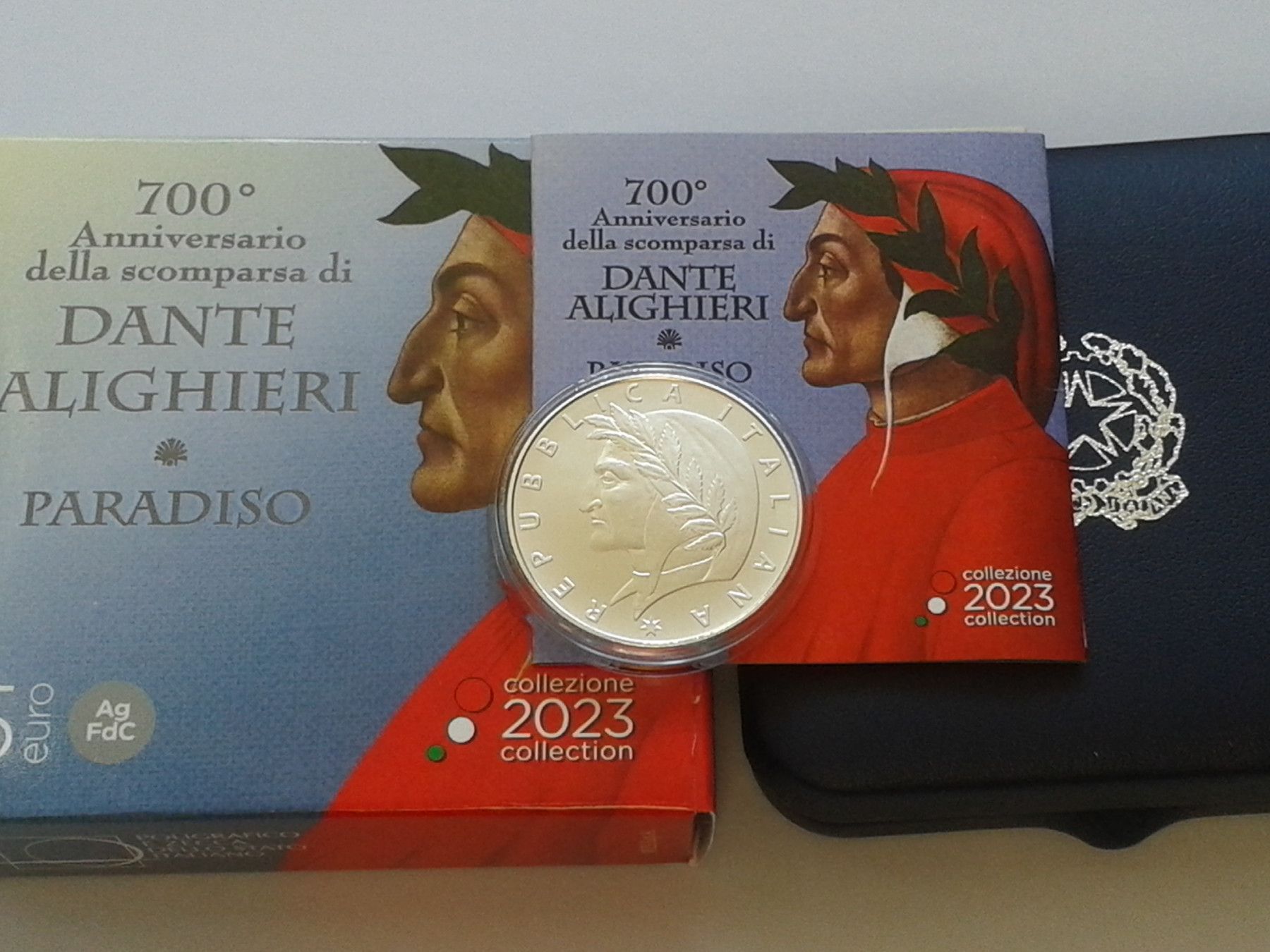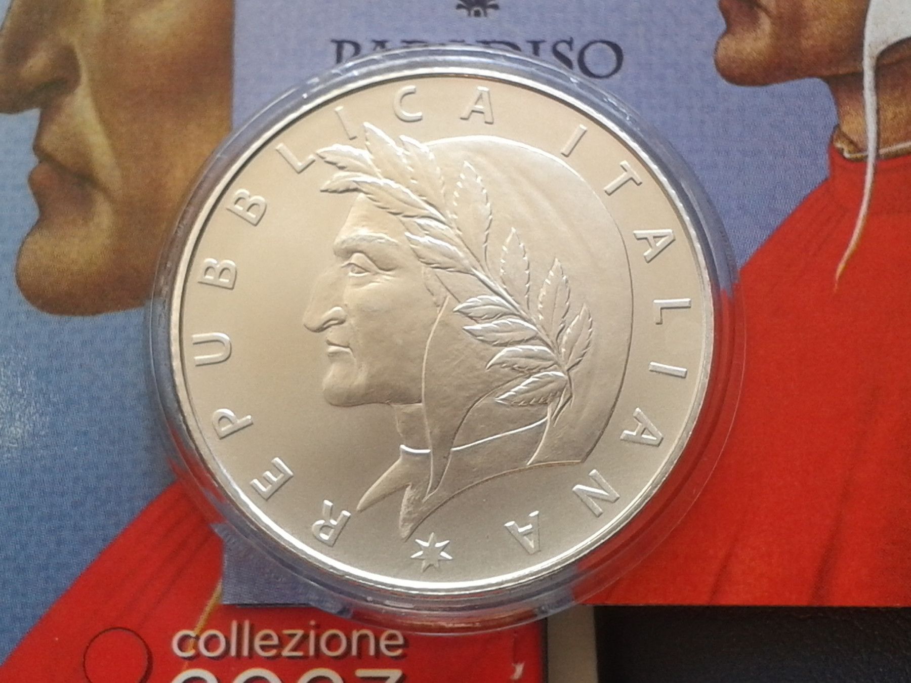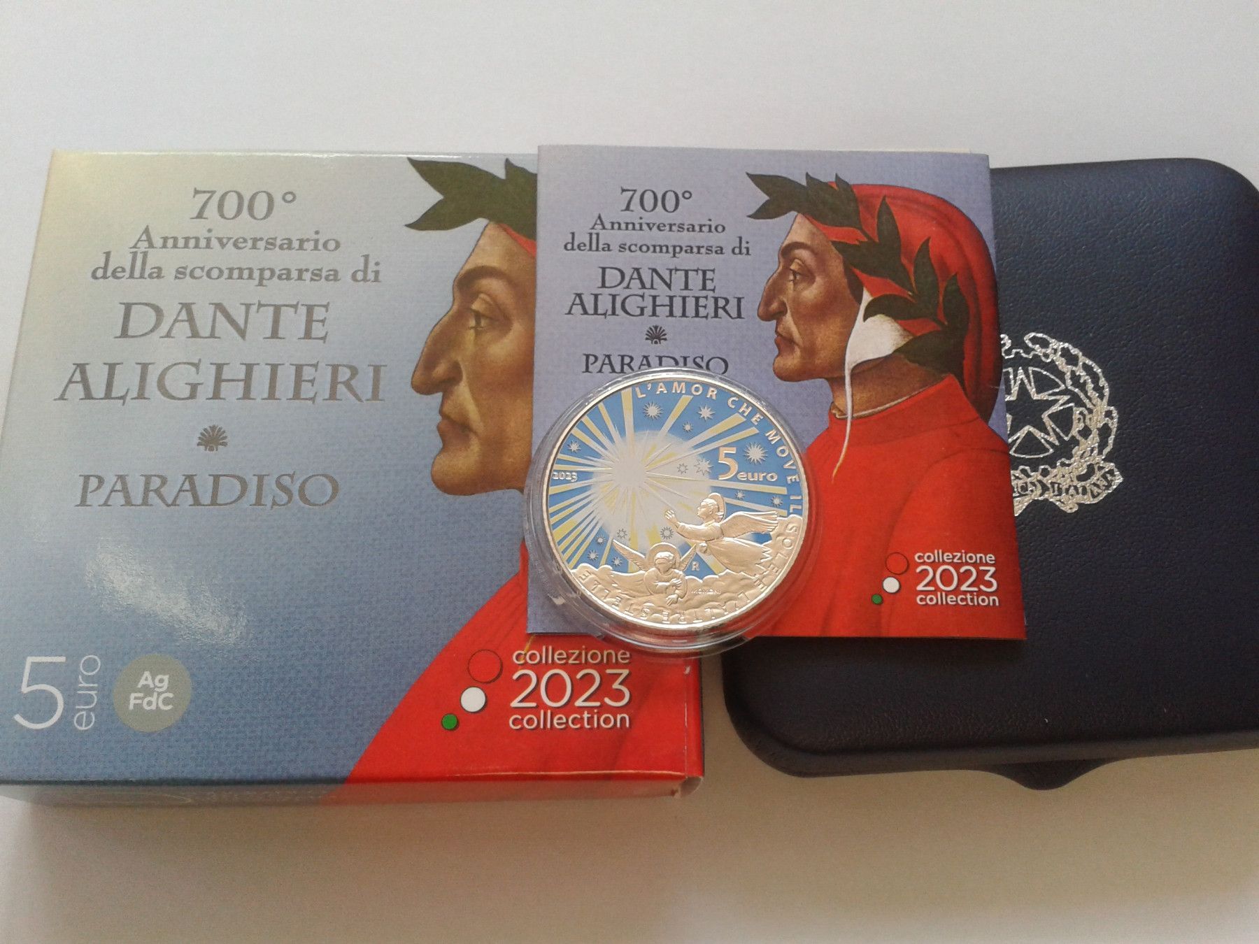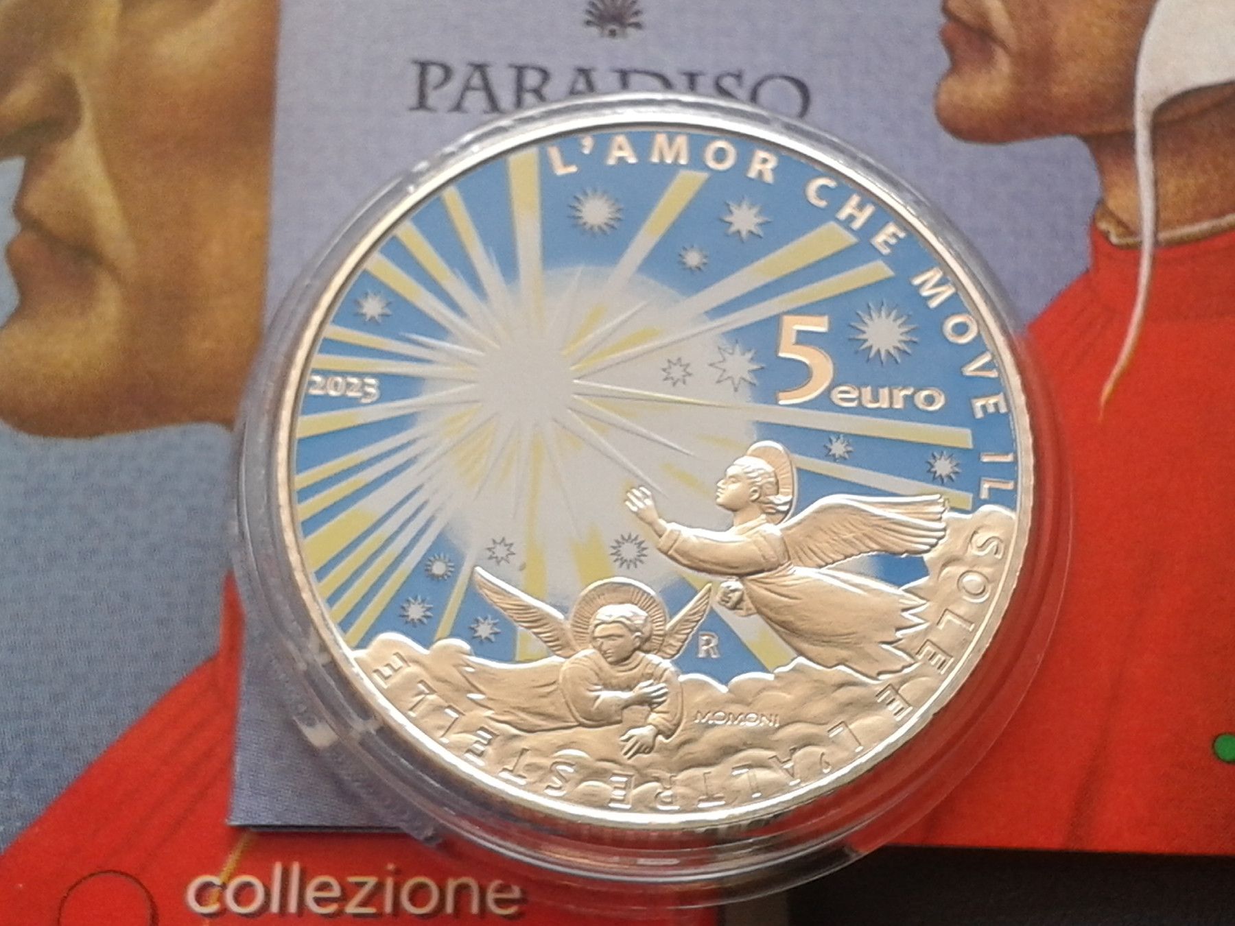 Original 5 euro 2023 Italien Dante Alighieri Paradiso Silber coloriert farbig